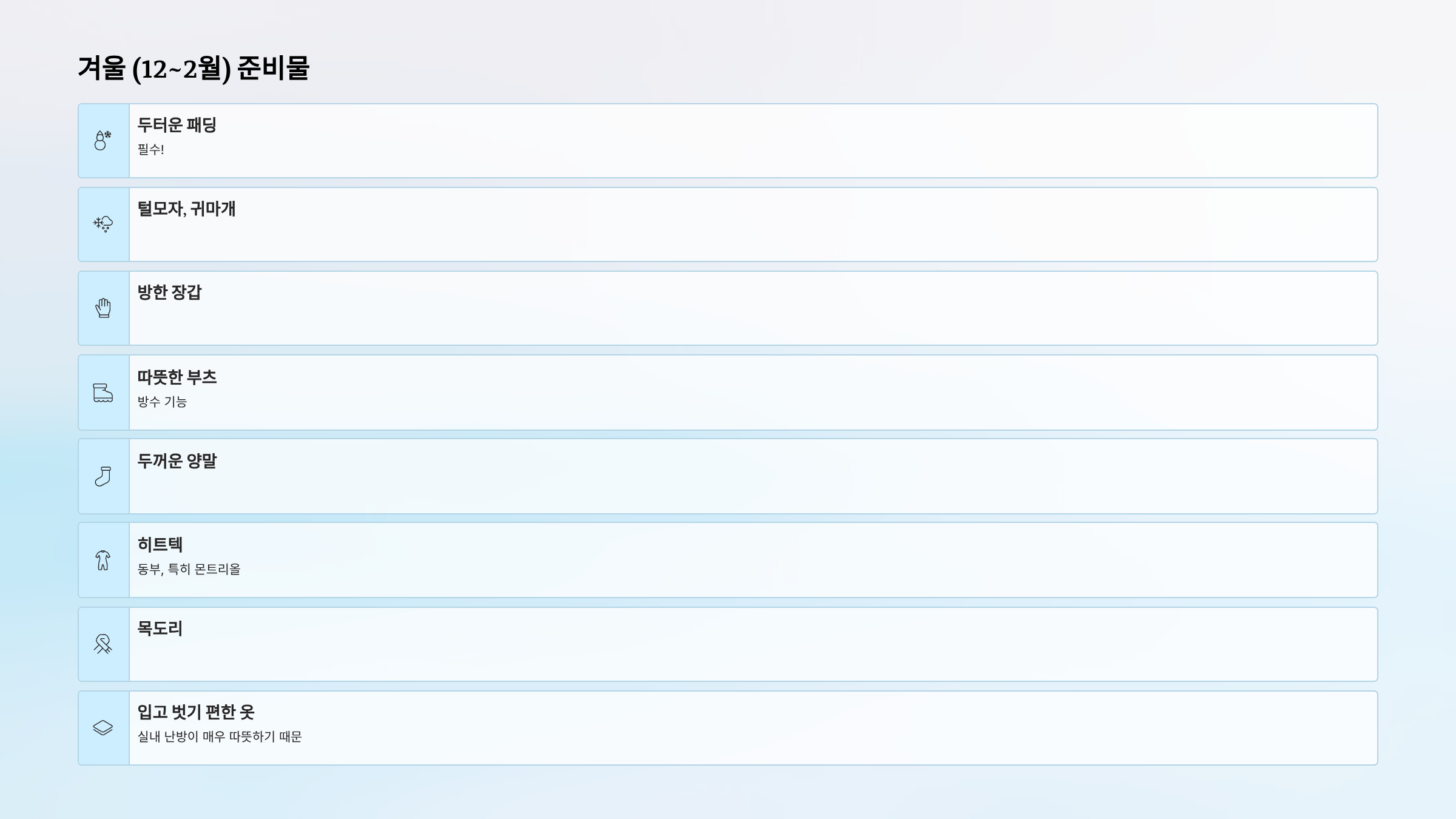 겨울 (12~2월) 준비물