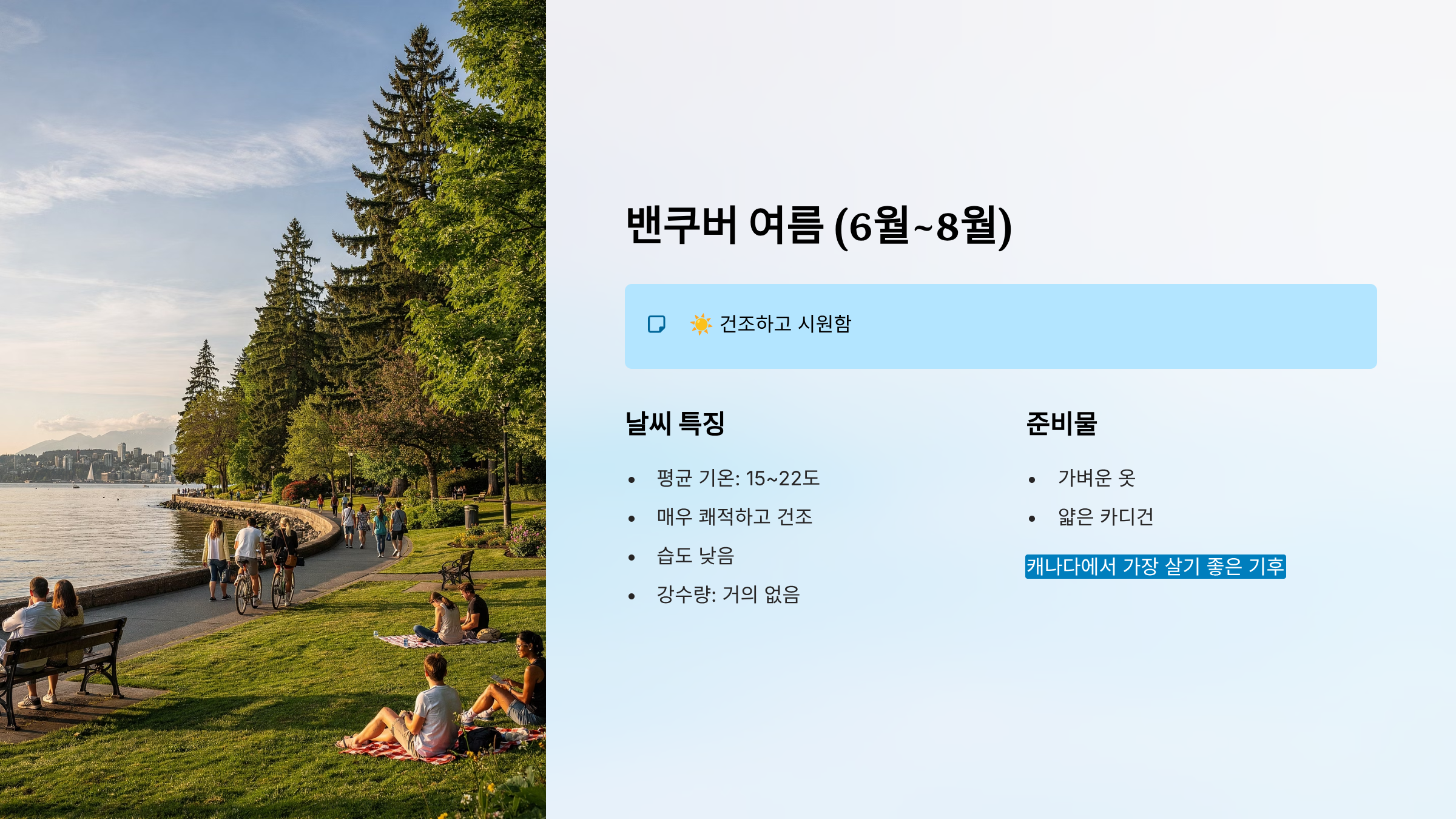4️⃣ 밴쿠버 (브리티시컬럼비아주) - 캐나다에서 가장 온화한 도시