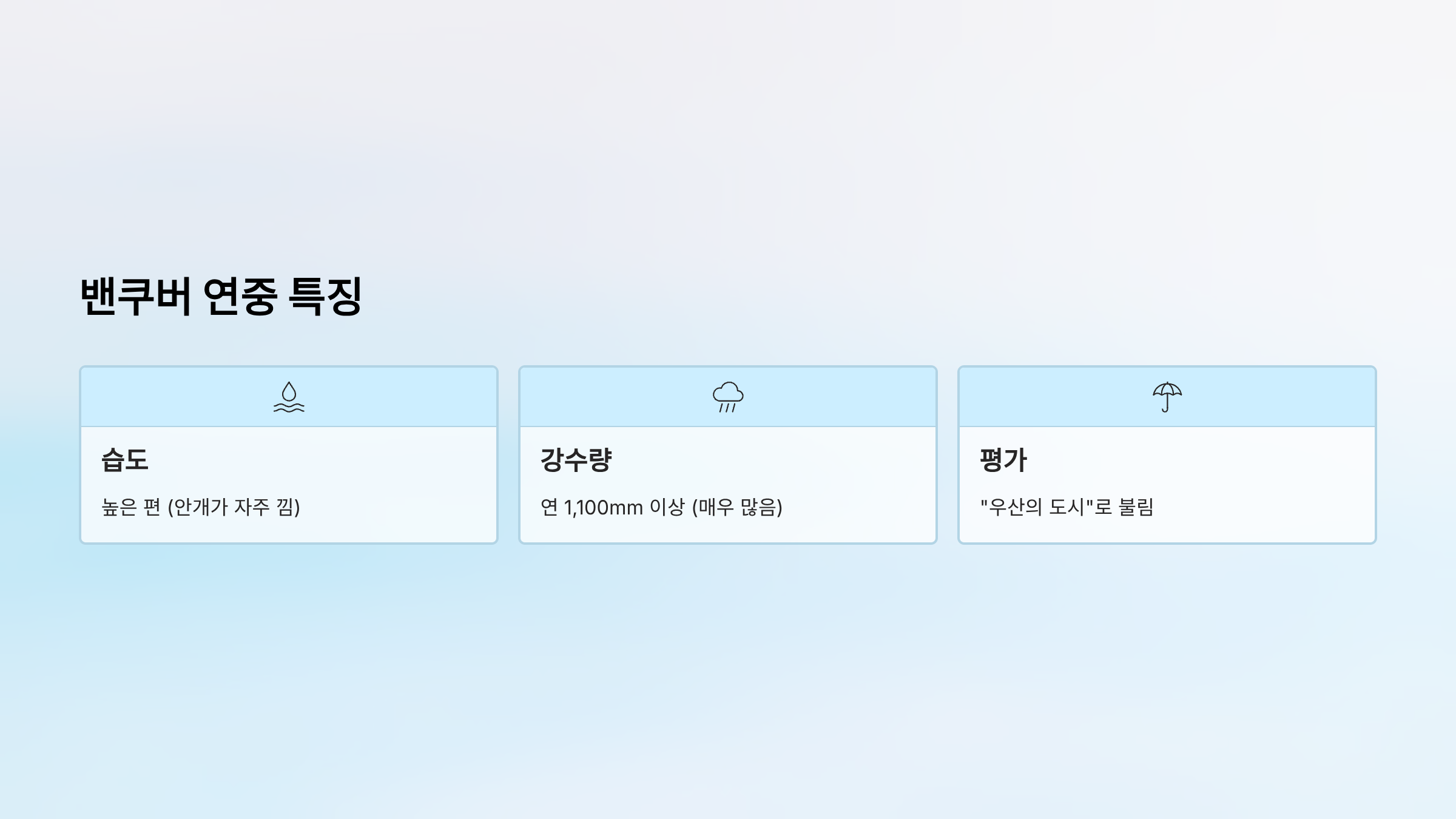 - 습도: 높은 편 (안개가 자주 낌)