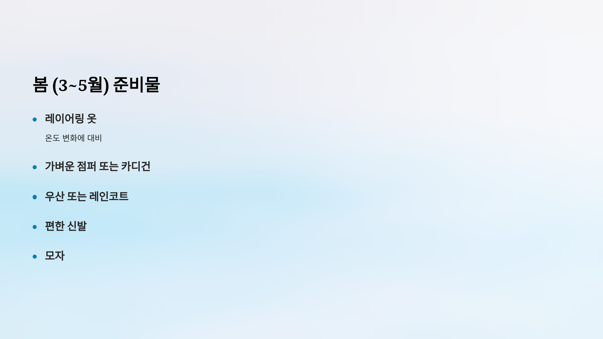 봄 (3~5월) 준비물
