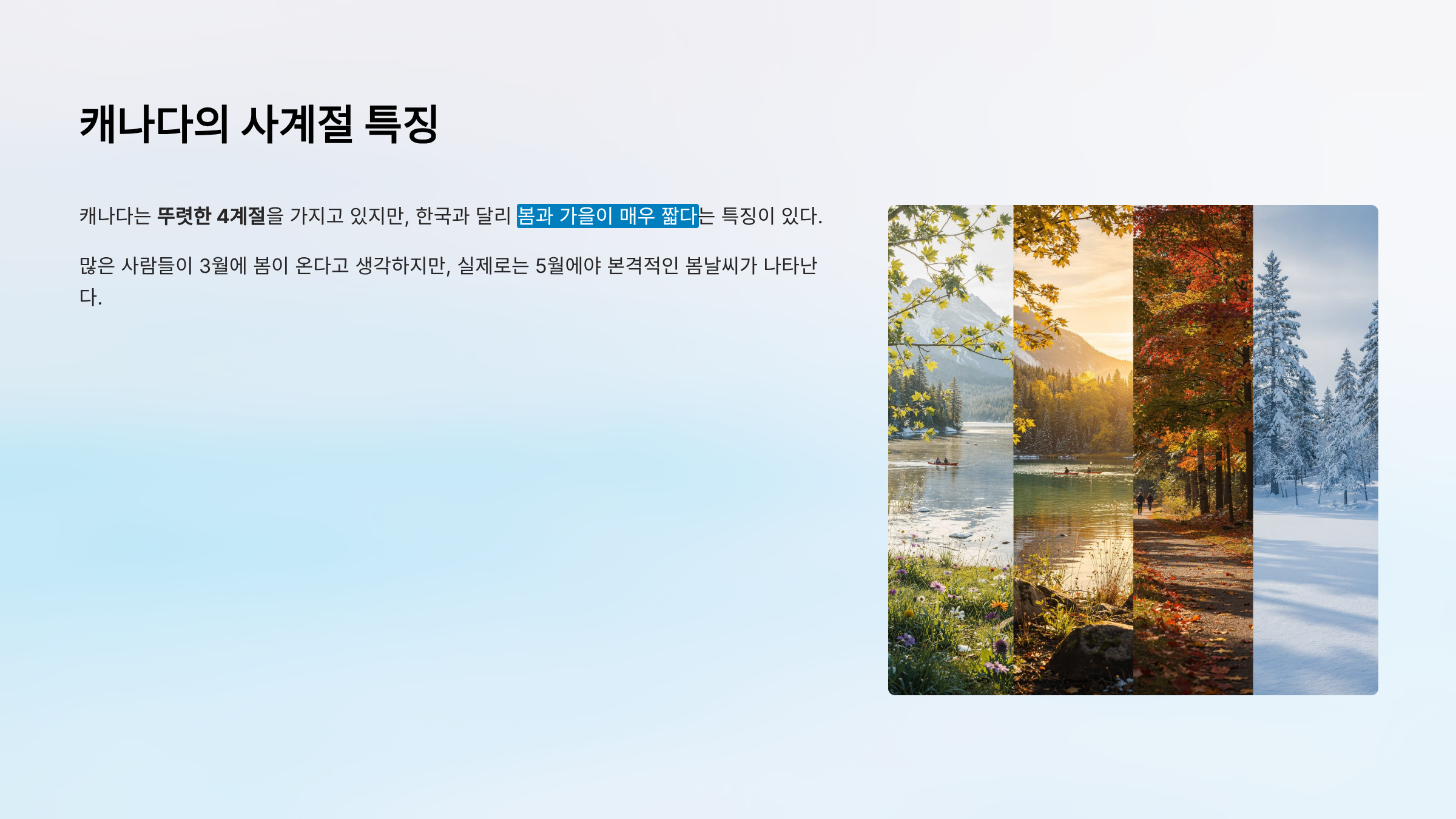 캐나다의 사계절 특징