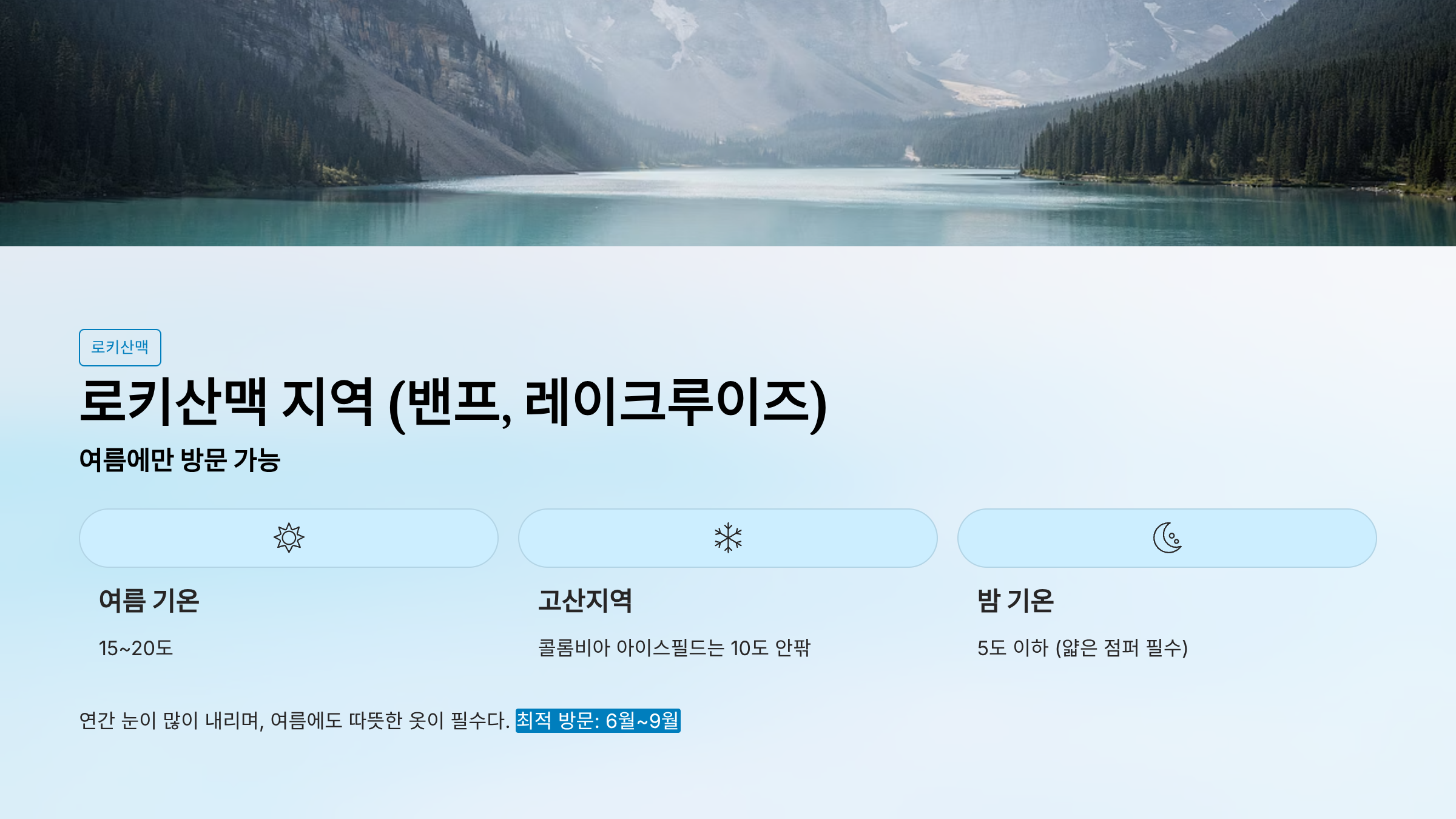 6️⃣ 로키산맥 지역 (밴프, 레이크루이즈)