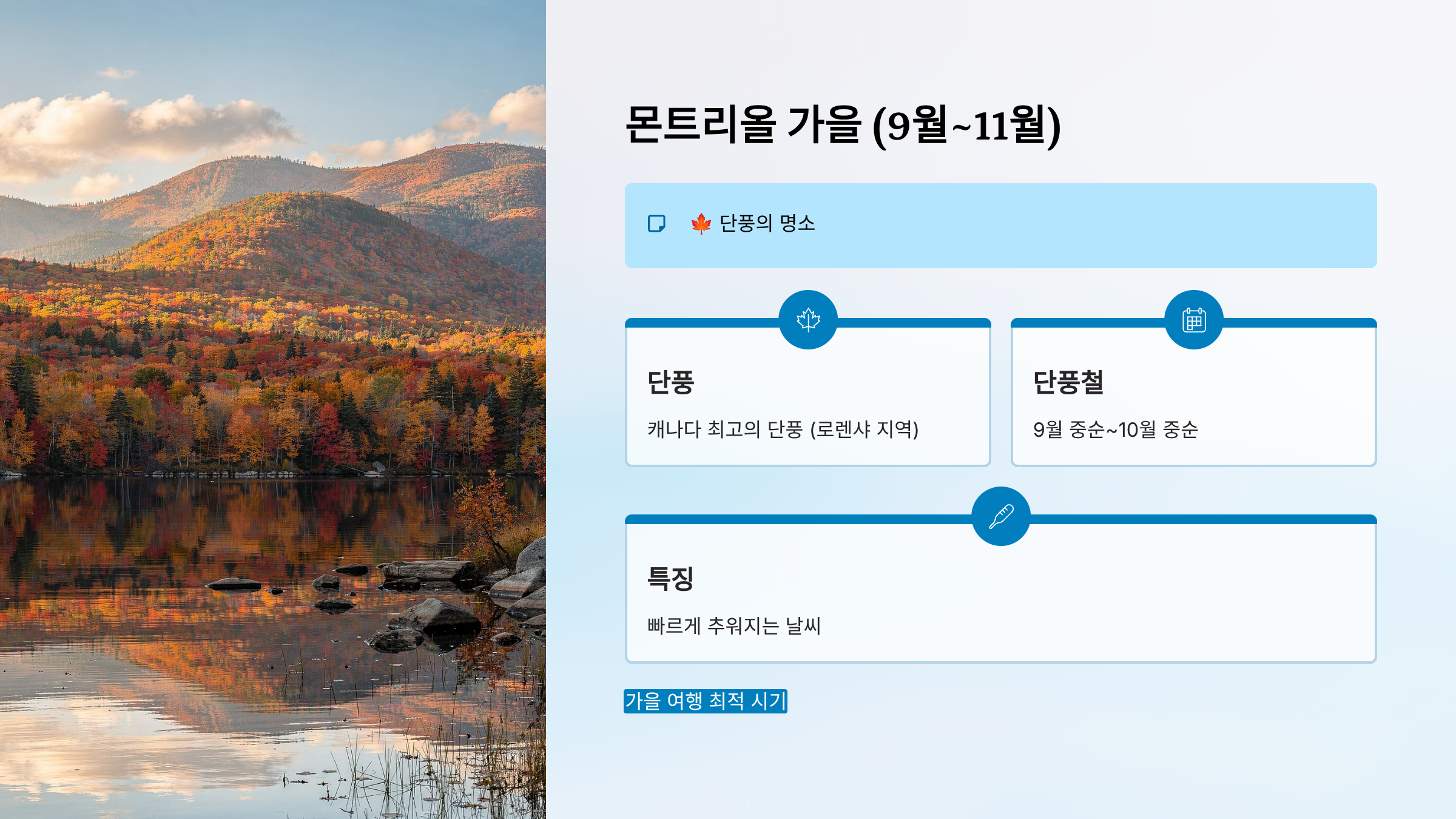 - 팁: 가을 여행 최적 시기