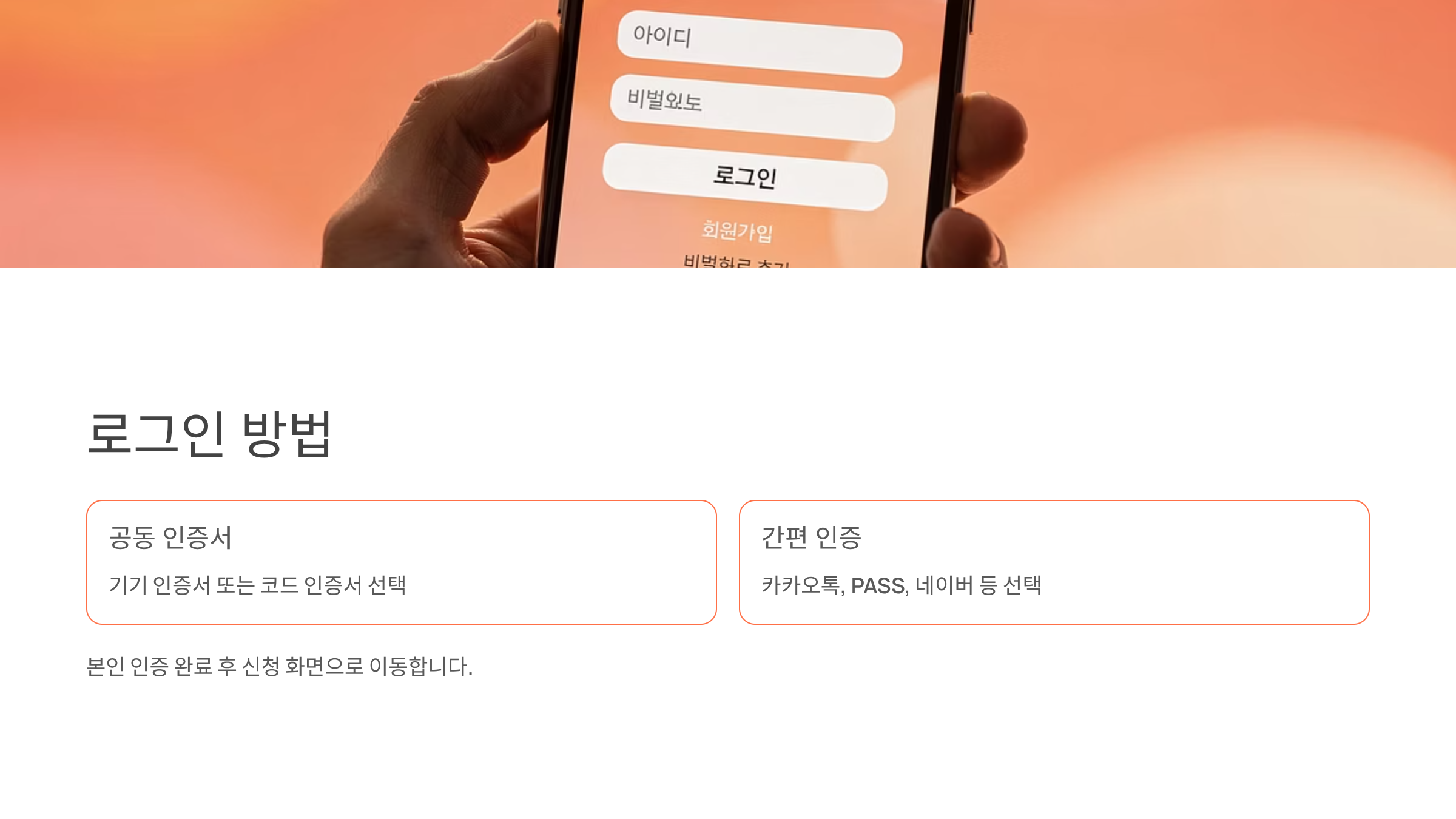- 공동 인증서 또는 간편 인증 (카카오톡, PASS 등) 선택