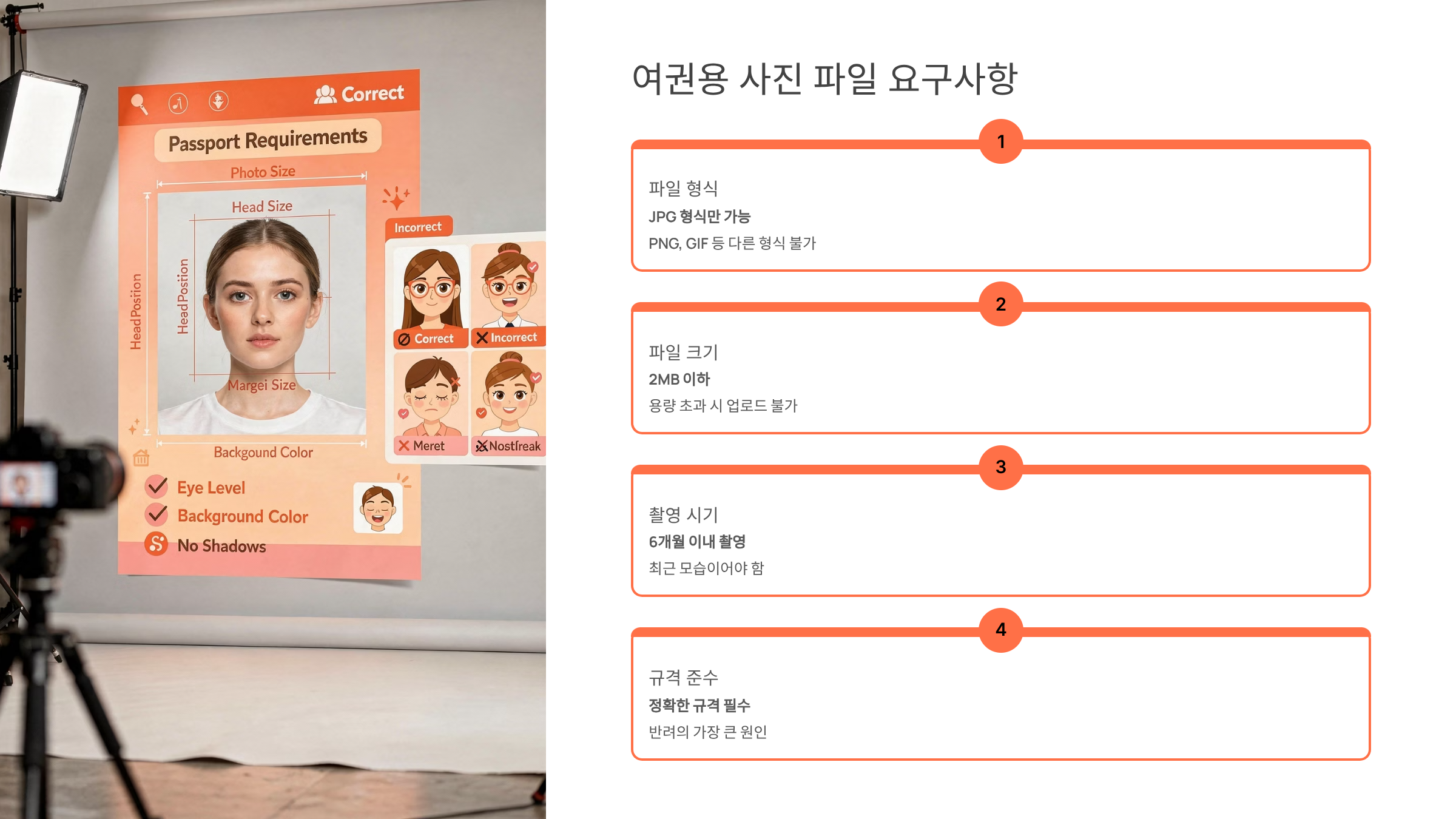 📸 여권 사진 규격 - 반려 방지의 핵심