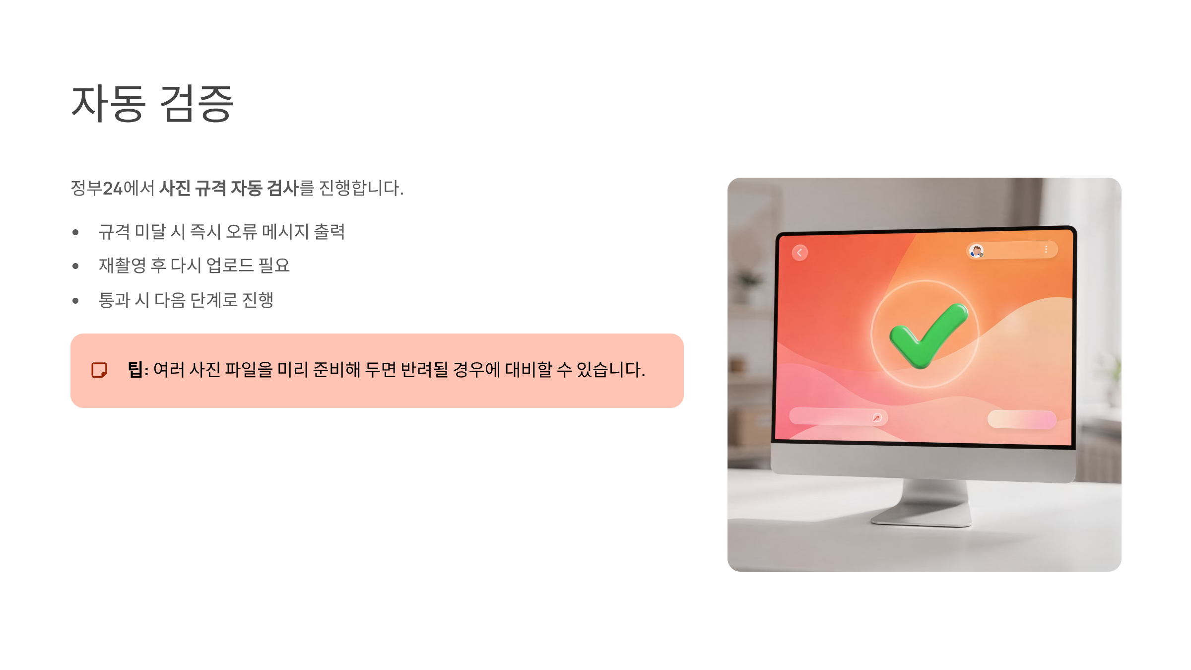 - 신청 전 사진이 규정에 맞는지 미리 확인 가능