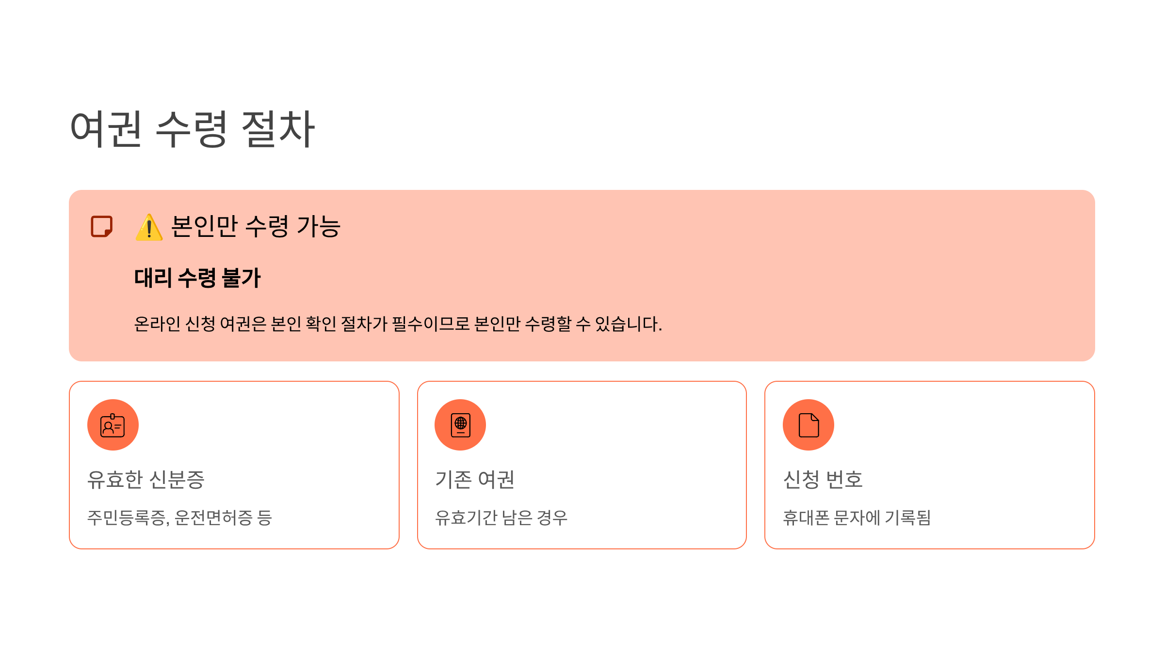 - 온라인 신청 여권은 본인 확인 절차 필수