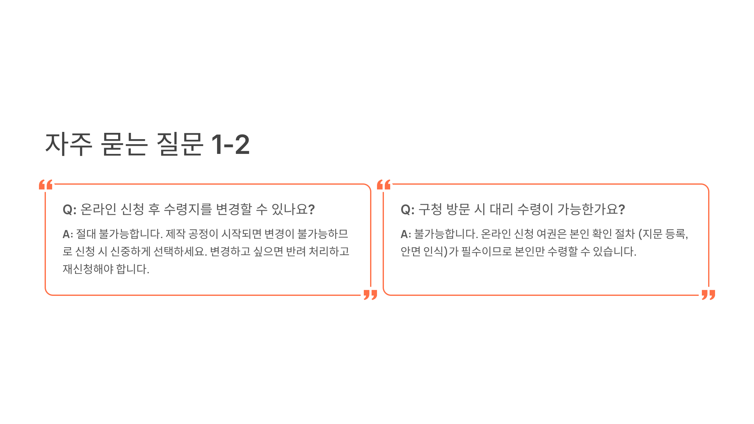 - 발급 완료 후 30일 이내 수령 (초과 시 반납 처리)