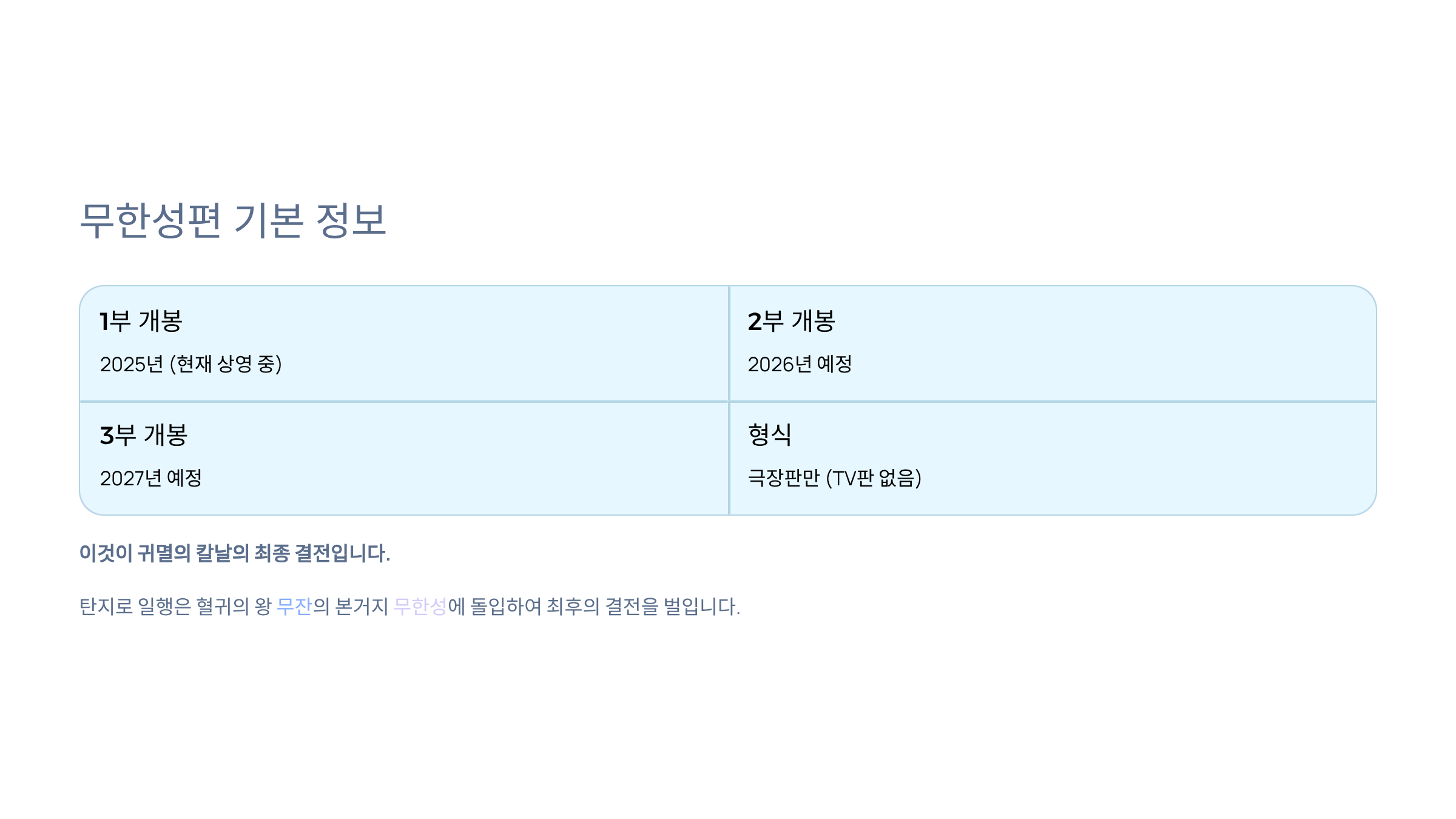 | 6️⃣ | 극장판 무한성편 | 극장판 | 미정 | 2025년~ |