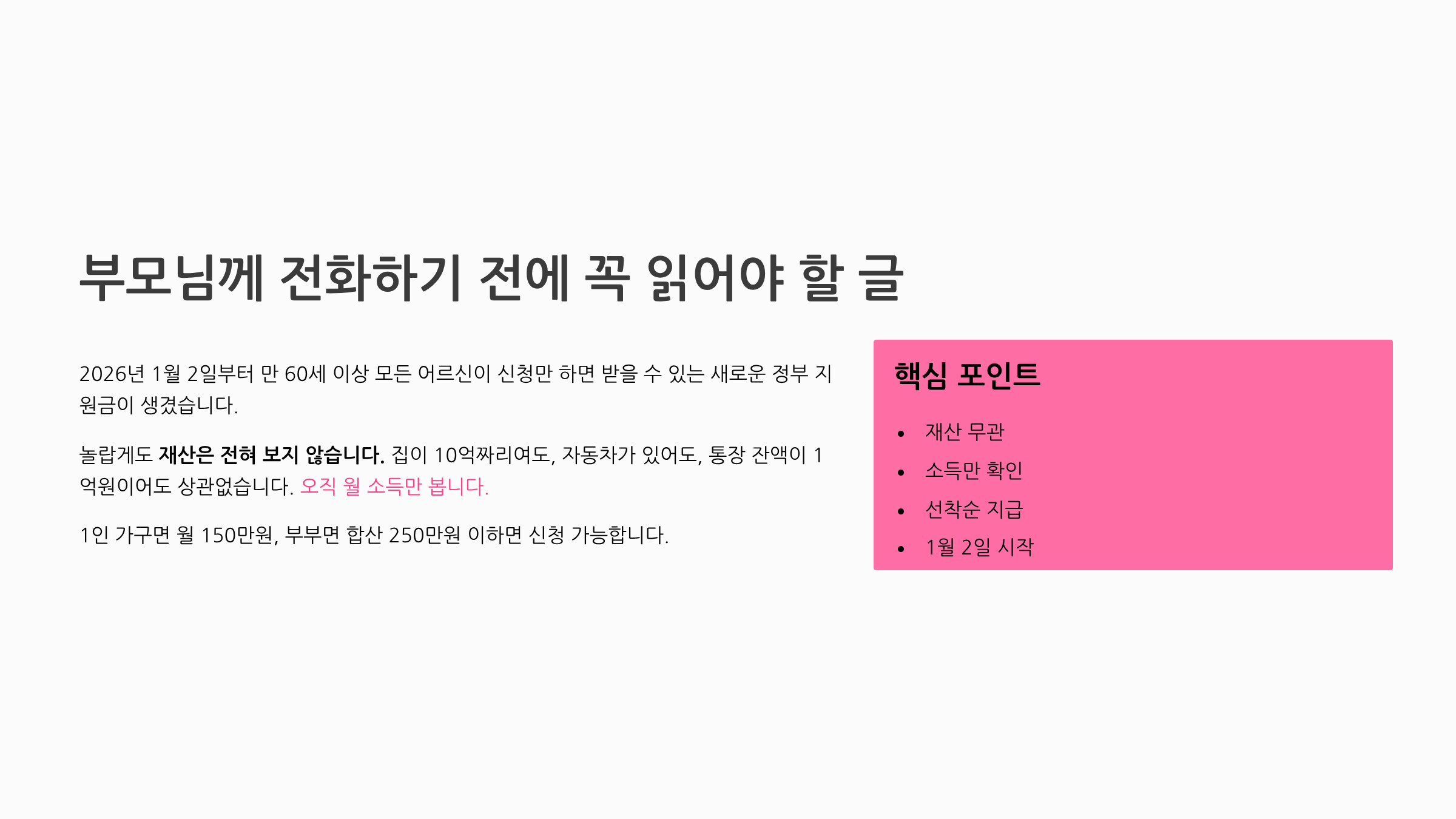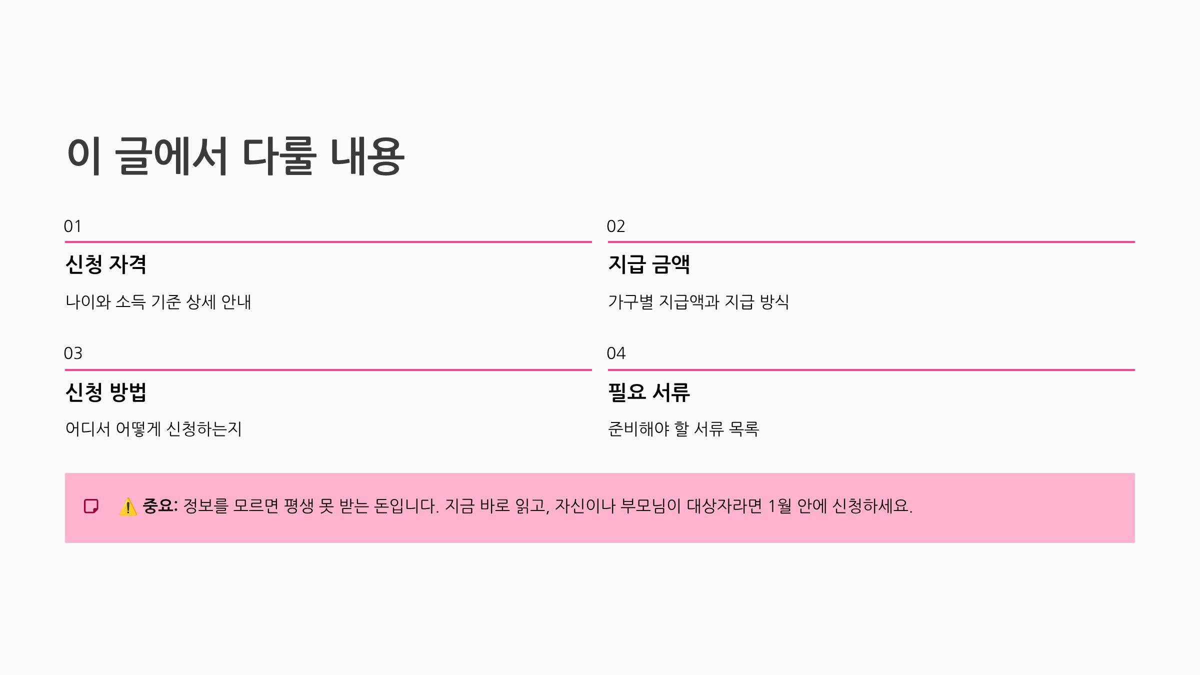 🎯 결론 | 노인 생활 안정자금, 정보를 모르면 못 받습니다