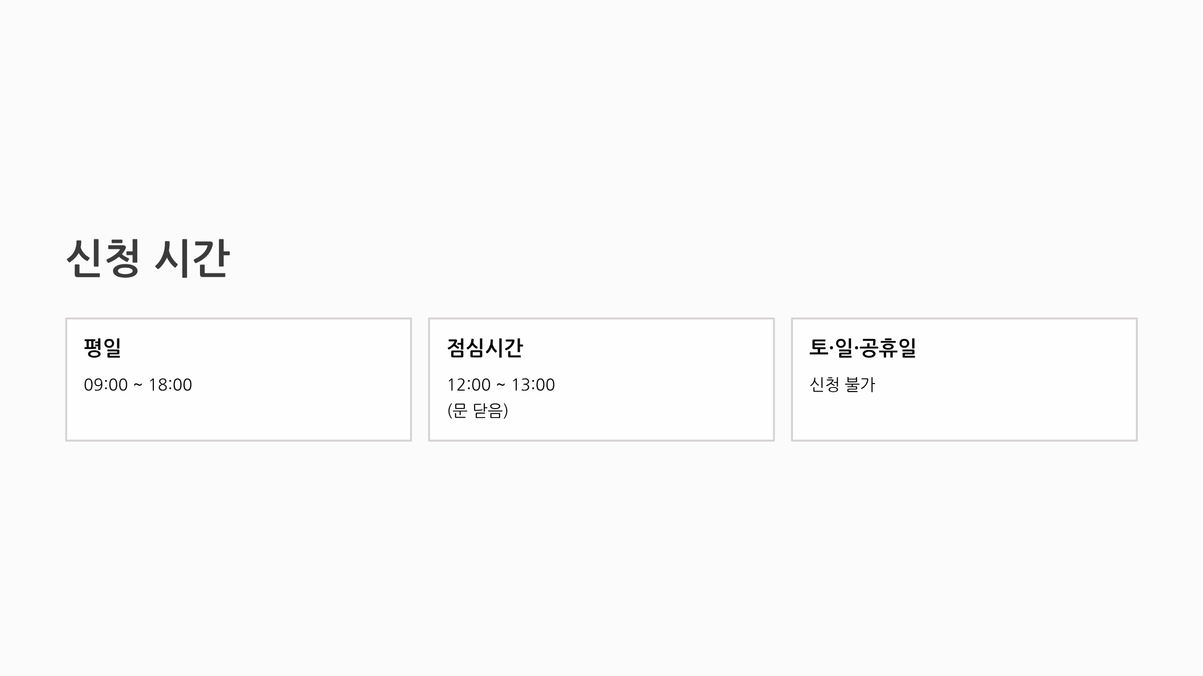 | 점심시간 | 12:00 ~ 13:00 (문 닫음) |