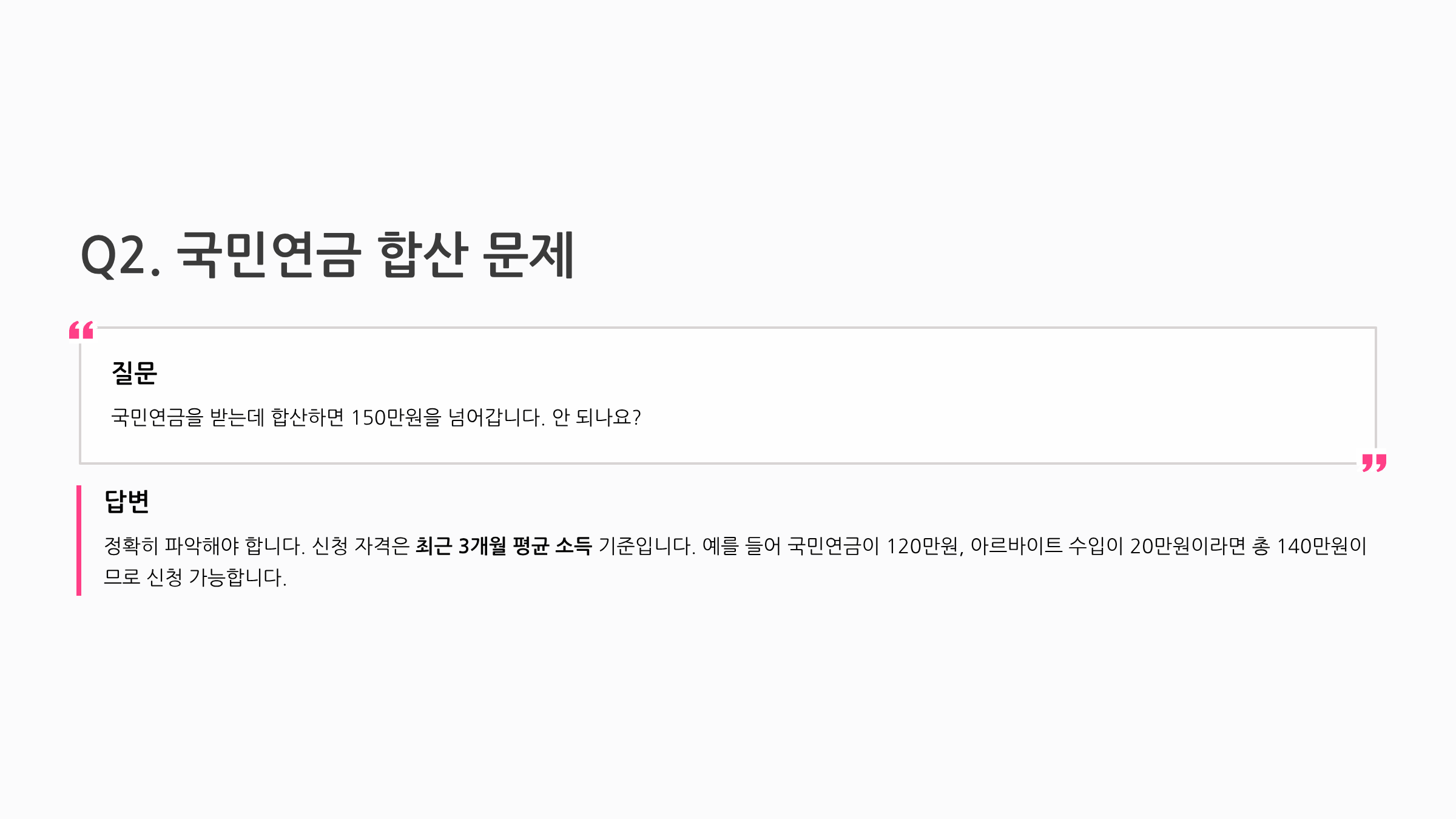 Q2. 국민연금을 받는데 합산하면 150만원을 넘어갑니다. 안 되나요?