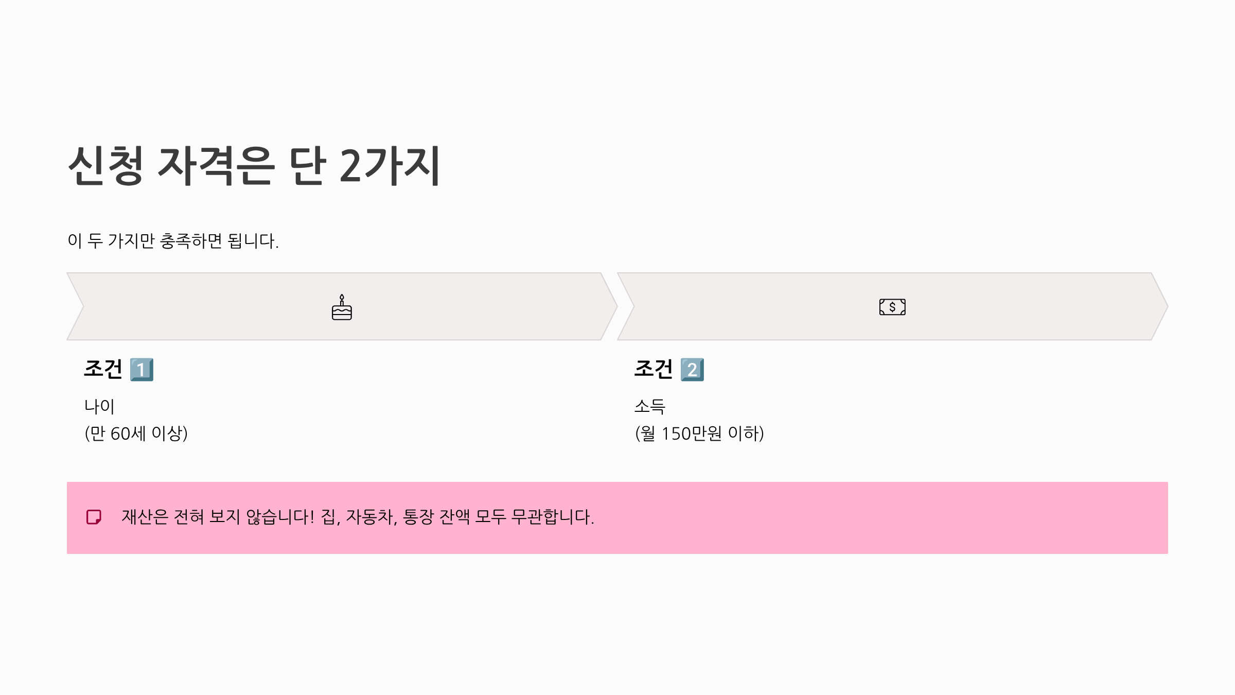 | 신청 가능 나이 | 만 60세 이상 (1966년생까지 가능) |