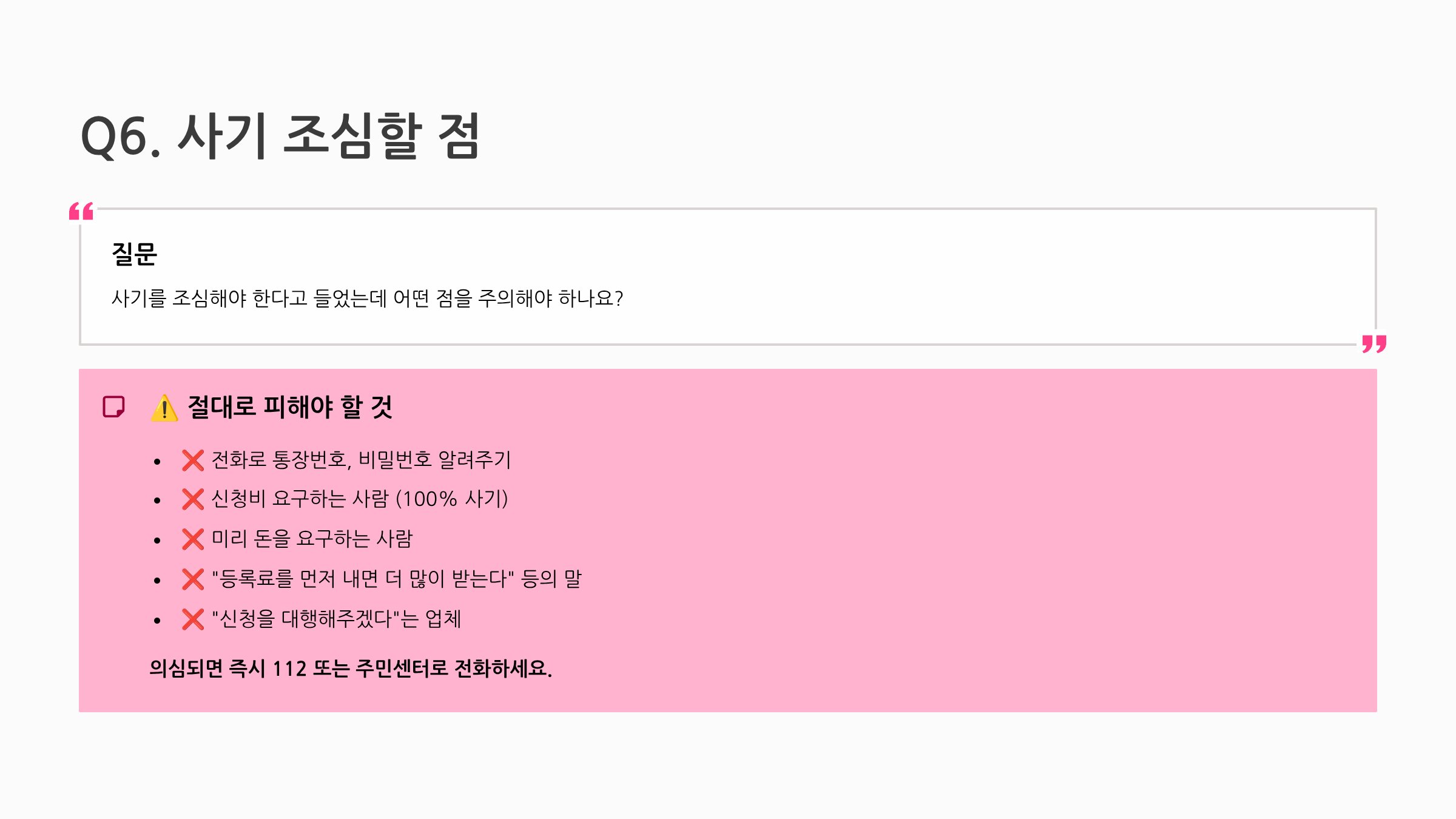 - ❌ "등록료를 먼저 내면 더 많이 받는다" 등의 말