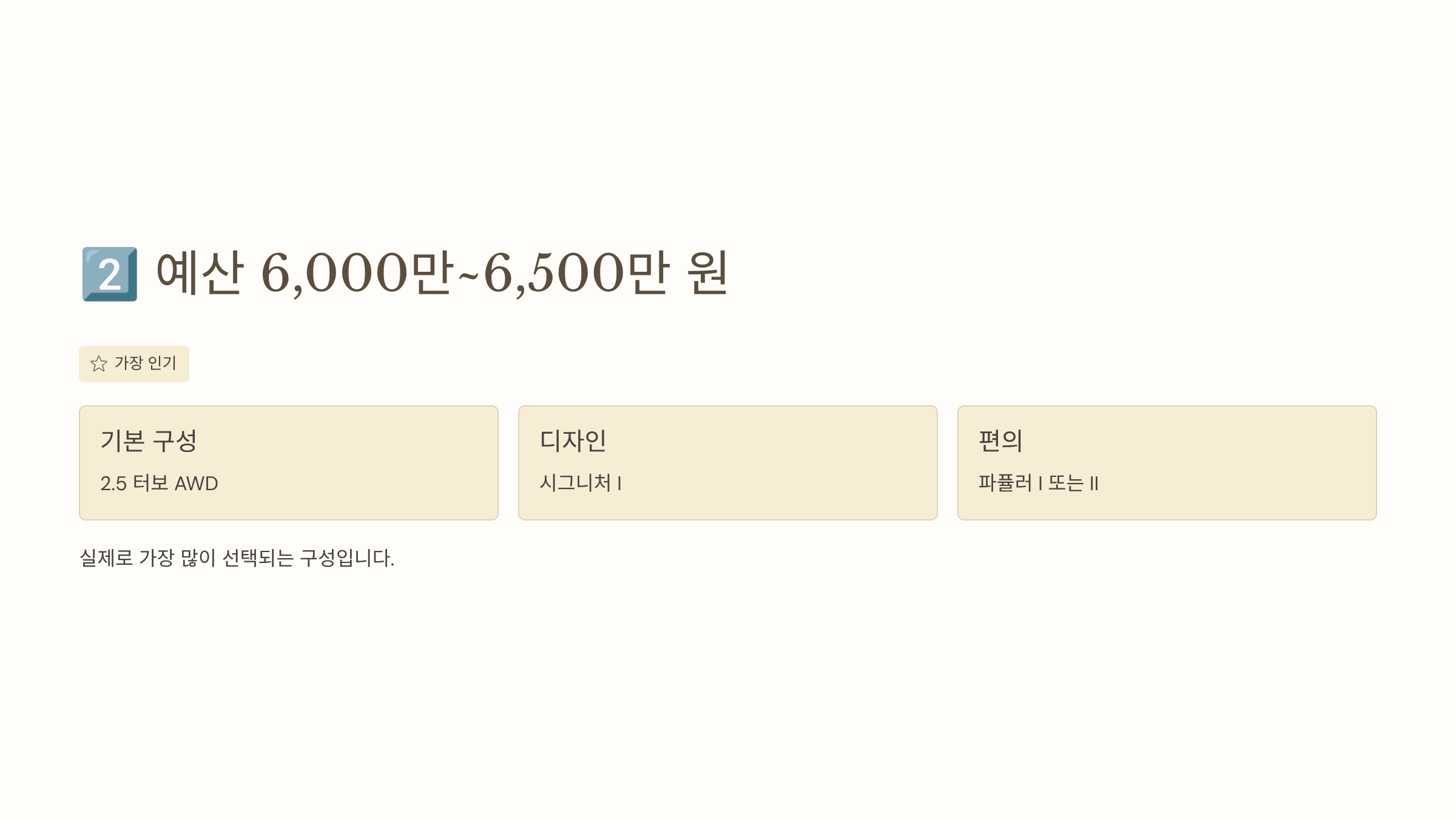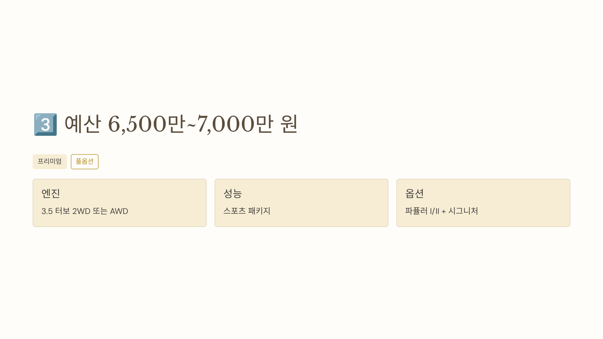 3️⃣ 예산 6,500만~7,000만 원 – “성능·옵션 다 챙기는 상위 구간”
