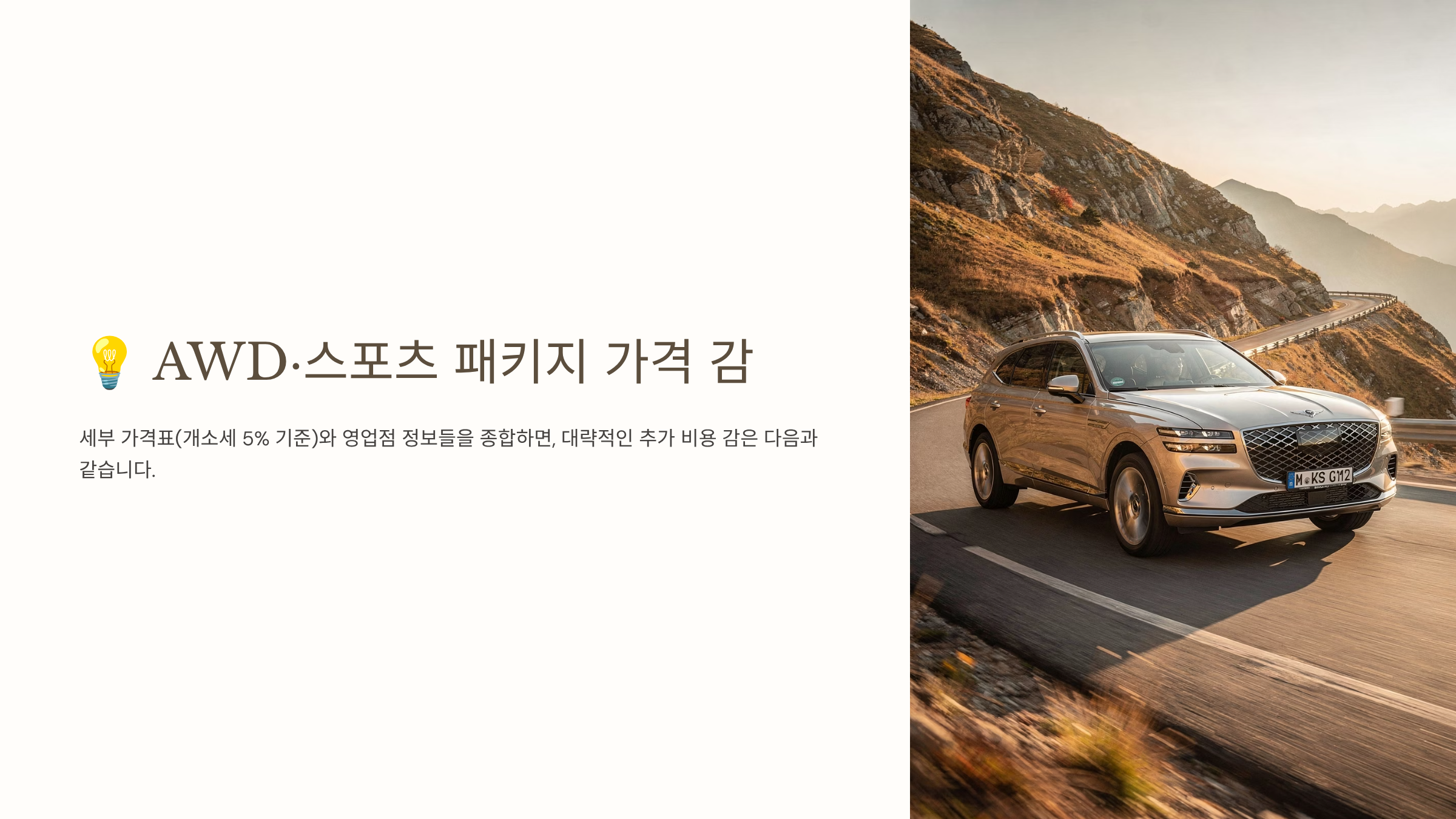 💡 AWD·스포츠 패키지 대략적인 가격 감