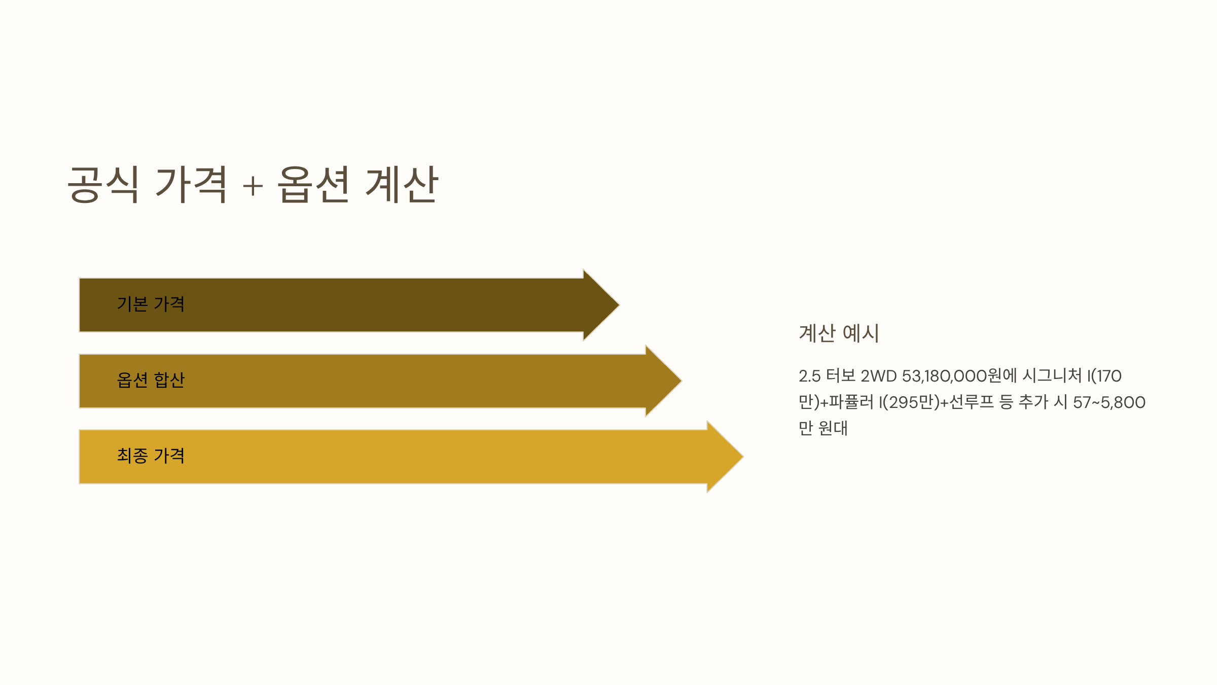 - 예: 2.5 터보 2WD 53,180,000원