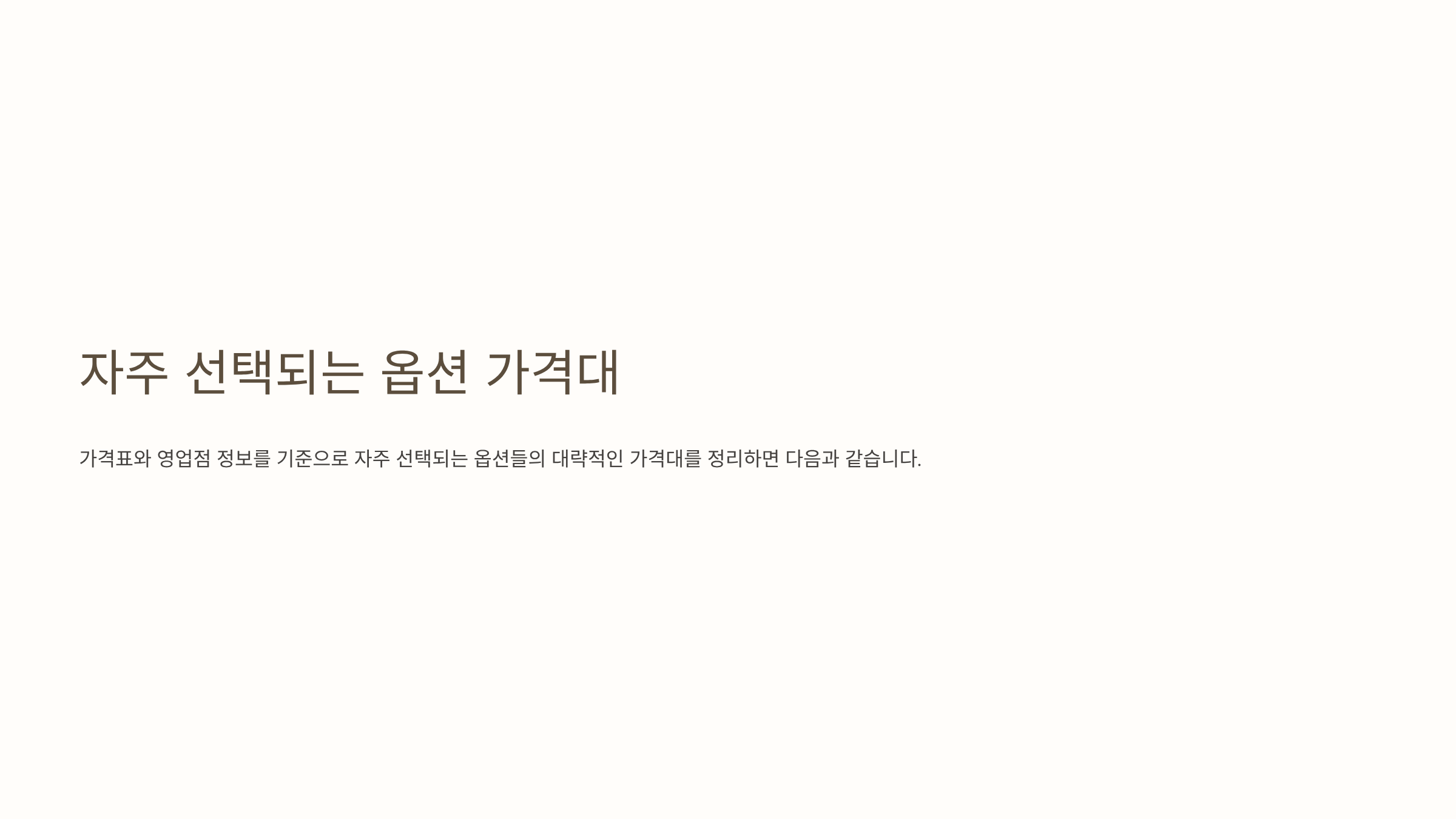가격표와 영업점 정보를 기준으로 자주 선택되는 옵션들의 대략적인 가격대를 정리하면 다음과 같습니다.