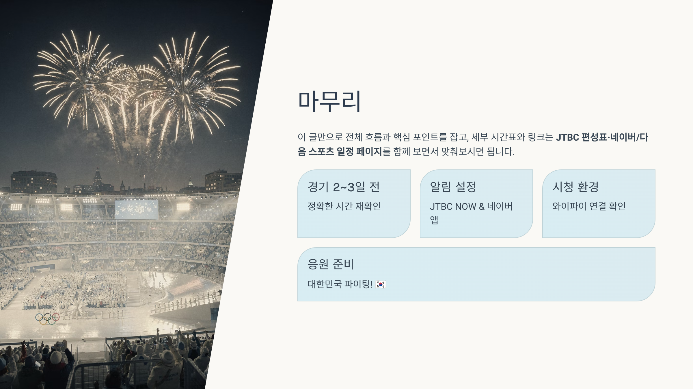 🚀 2026 밀라노 올림픽 무료 중계 보러가기🏟️ 밀라노 동계올림픽 전체 일정 & 시차 간단 정리