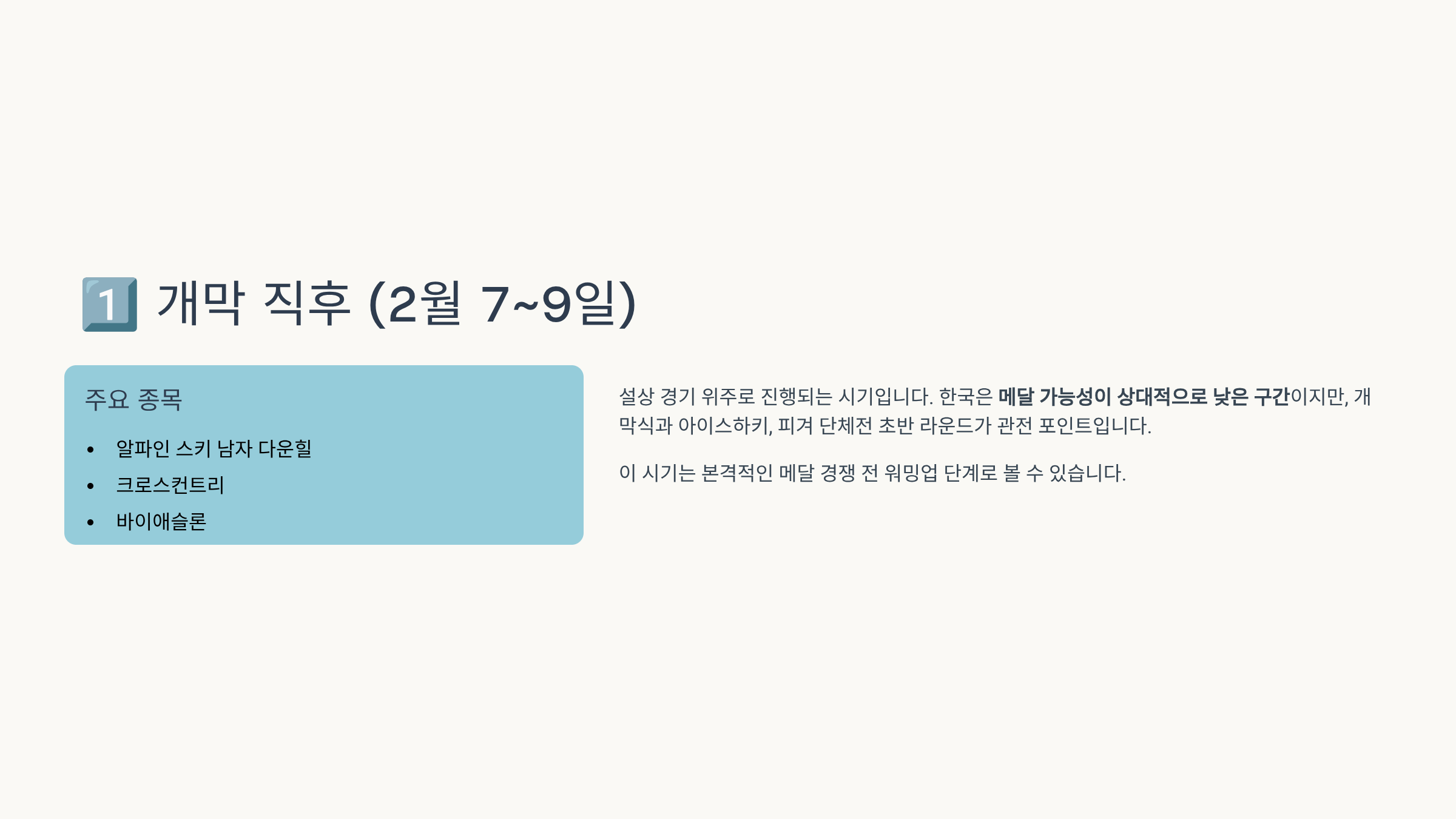 1️⃣ 개막 직후 (2월 7~9일)