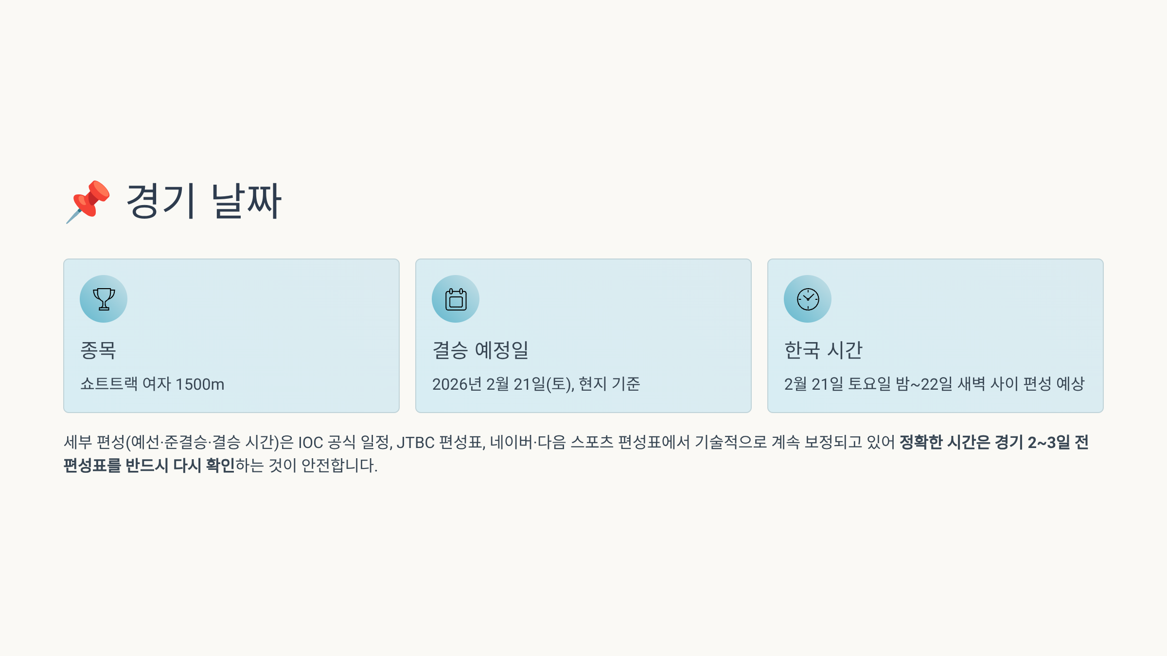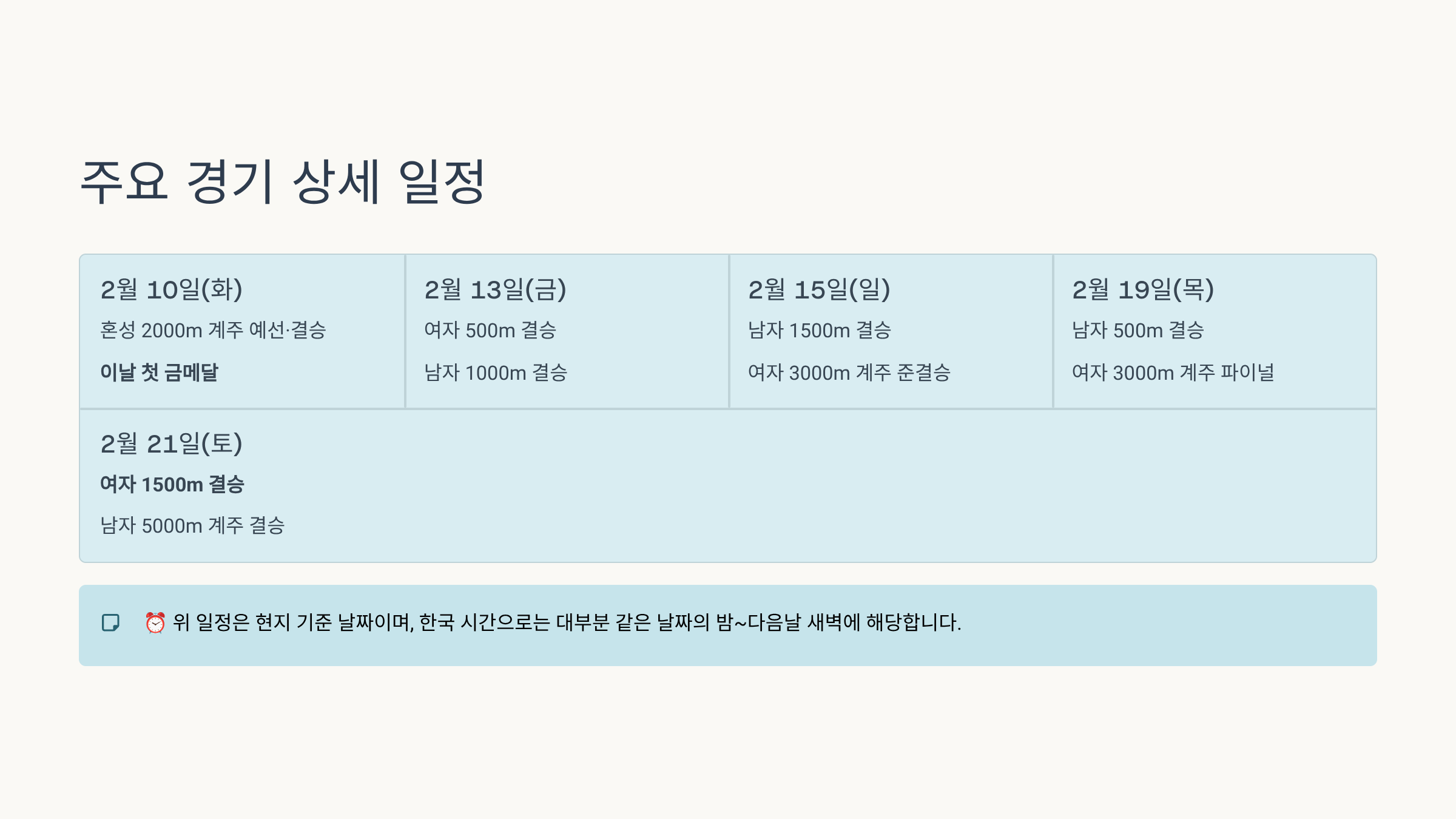 이번 대회는 한국 시간 기준으로 대부분의 주요 경기가 밤 10시~새벽 시간대에 편성되어 있어, 쇼트트랙·피겨·스피드스케이팅 팬들에게는 “새벽 직관”이 거의 필수가 될 분위기입니다.