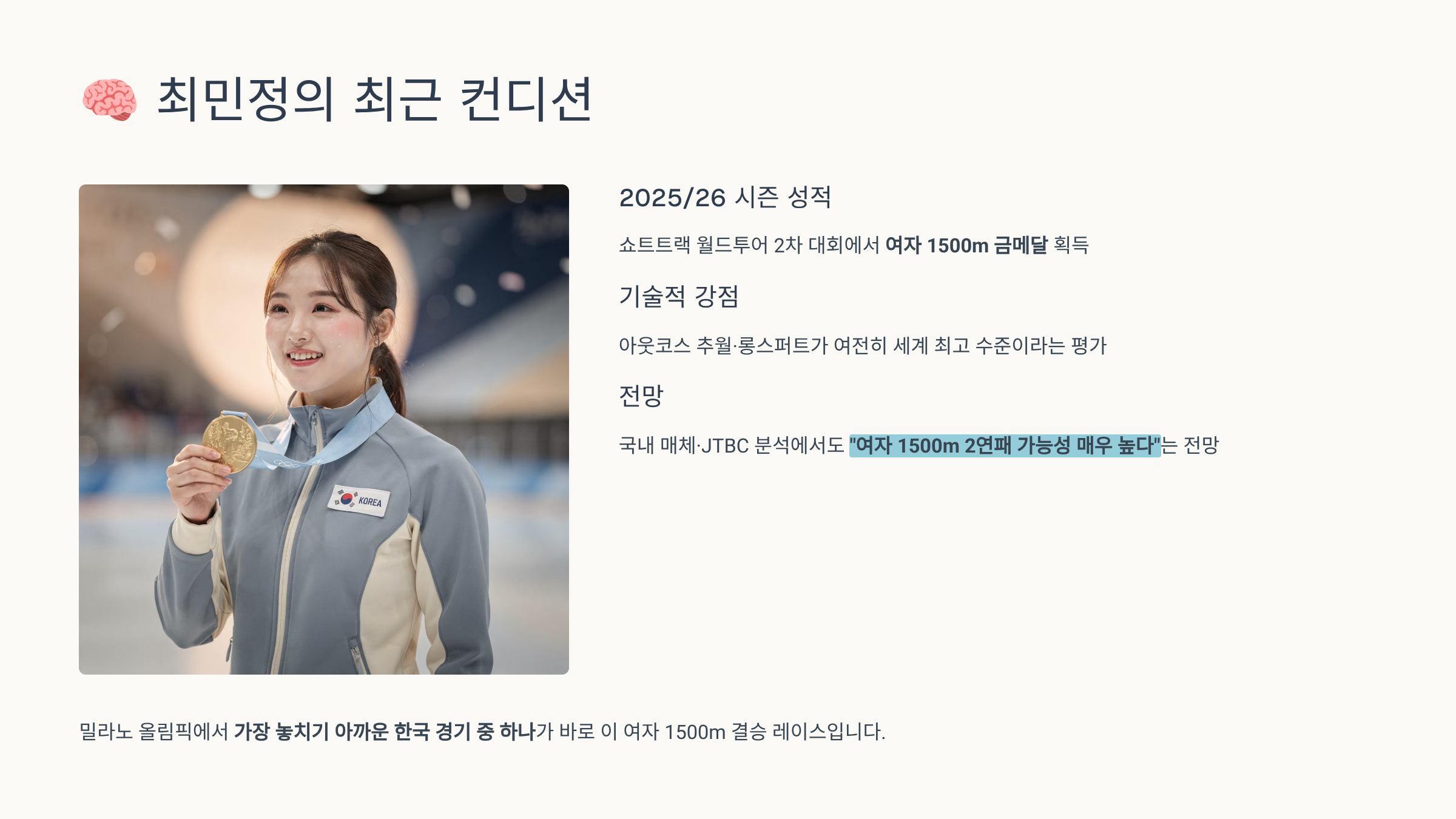 🧠 참고: 최민정의 최근 컨디션
