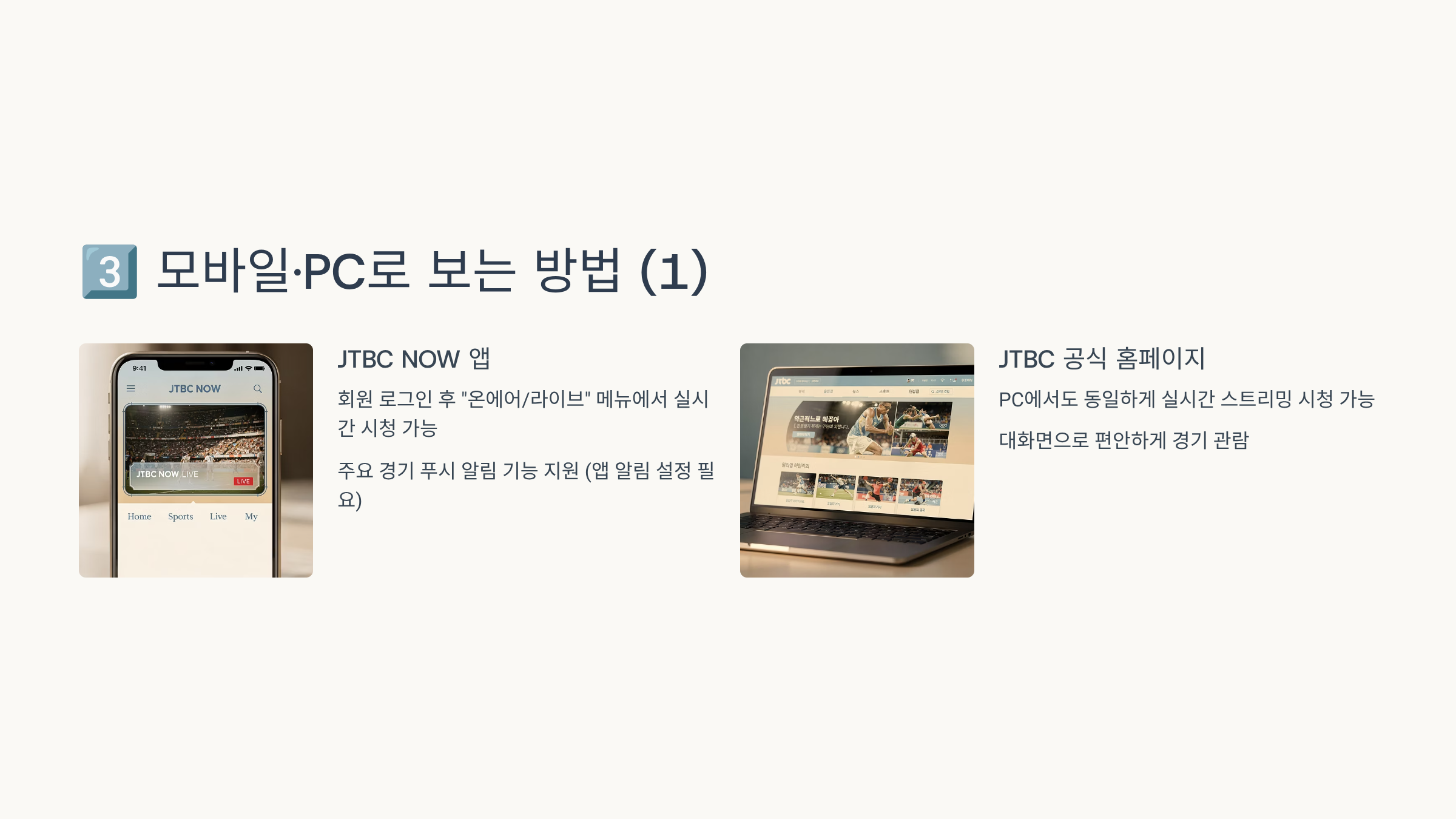“라이브 경기 전체를 보려면 JTBC만 보면 된다”고 기억하시면 됩니다.