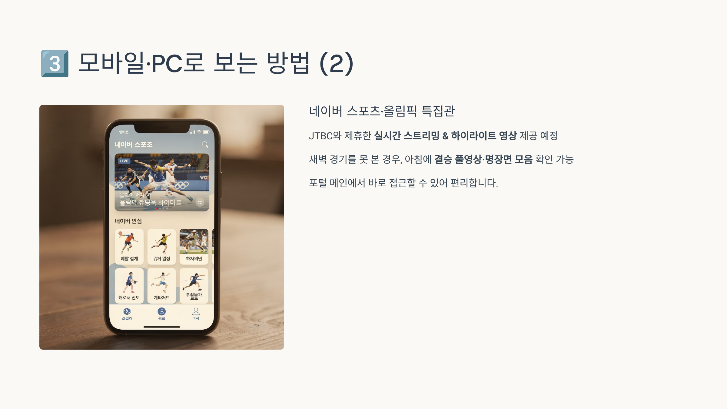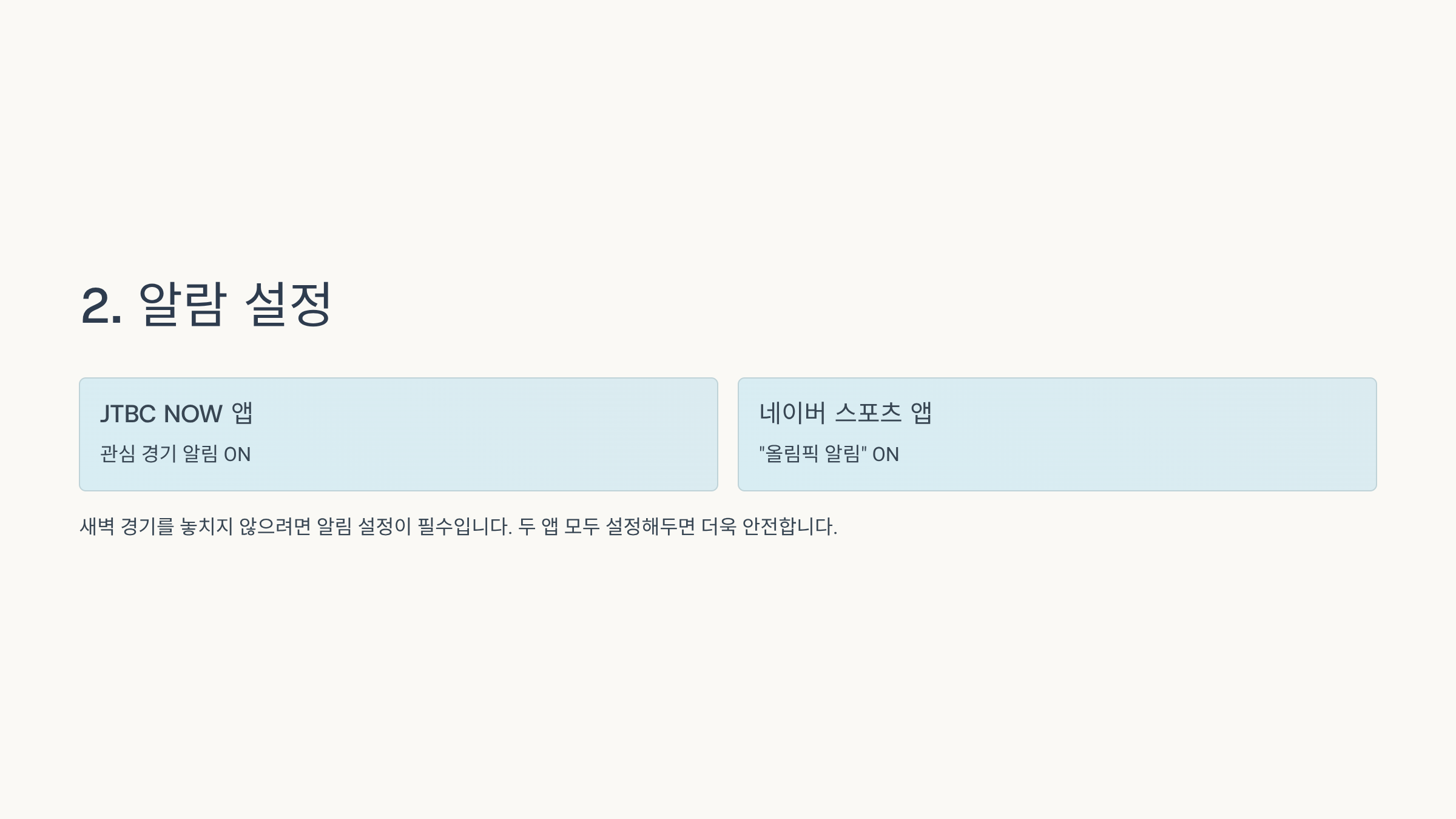 - 네이버 스포츠 앱 → “올림픽 알림” ON