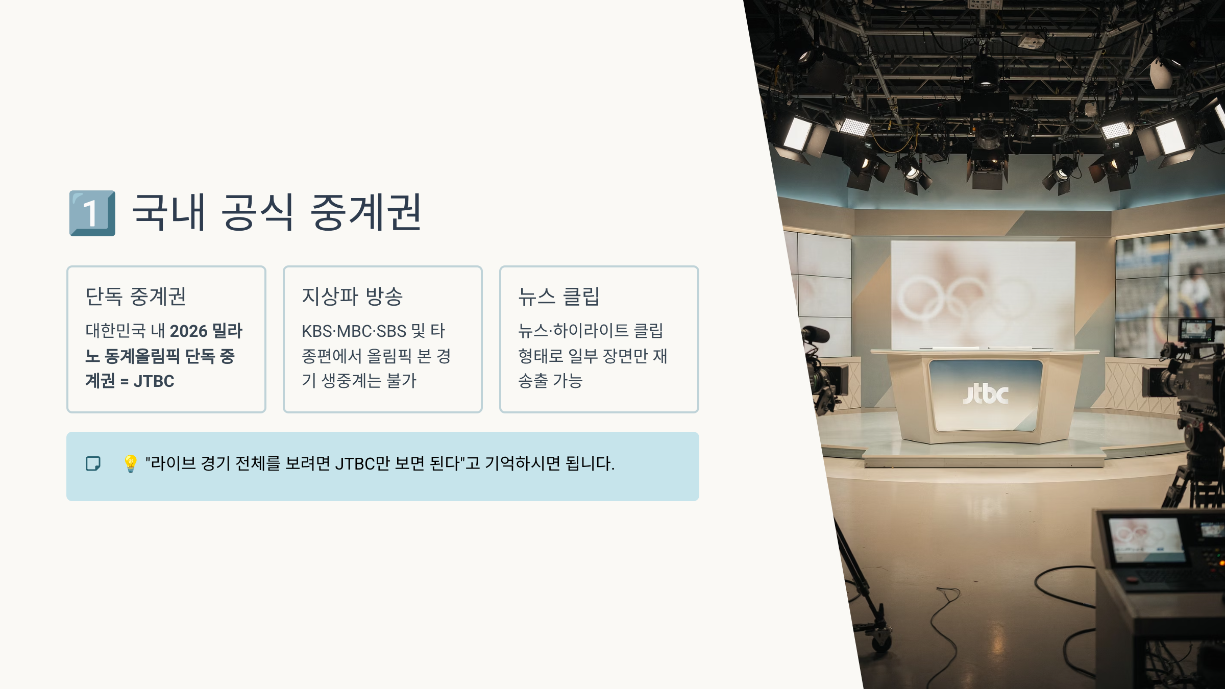 - 대한민국 내 2026 밀라노 동계올림픽 단독 중계권 = JTBC