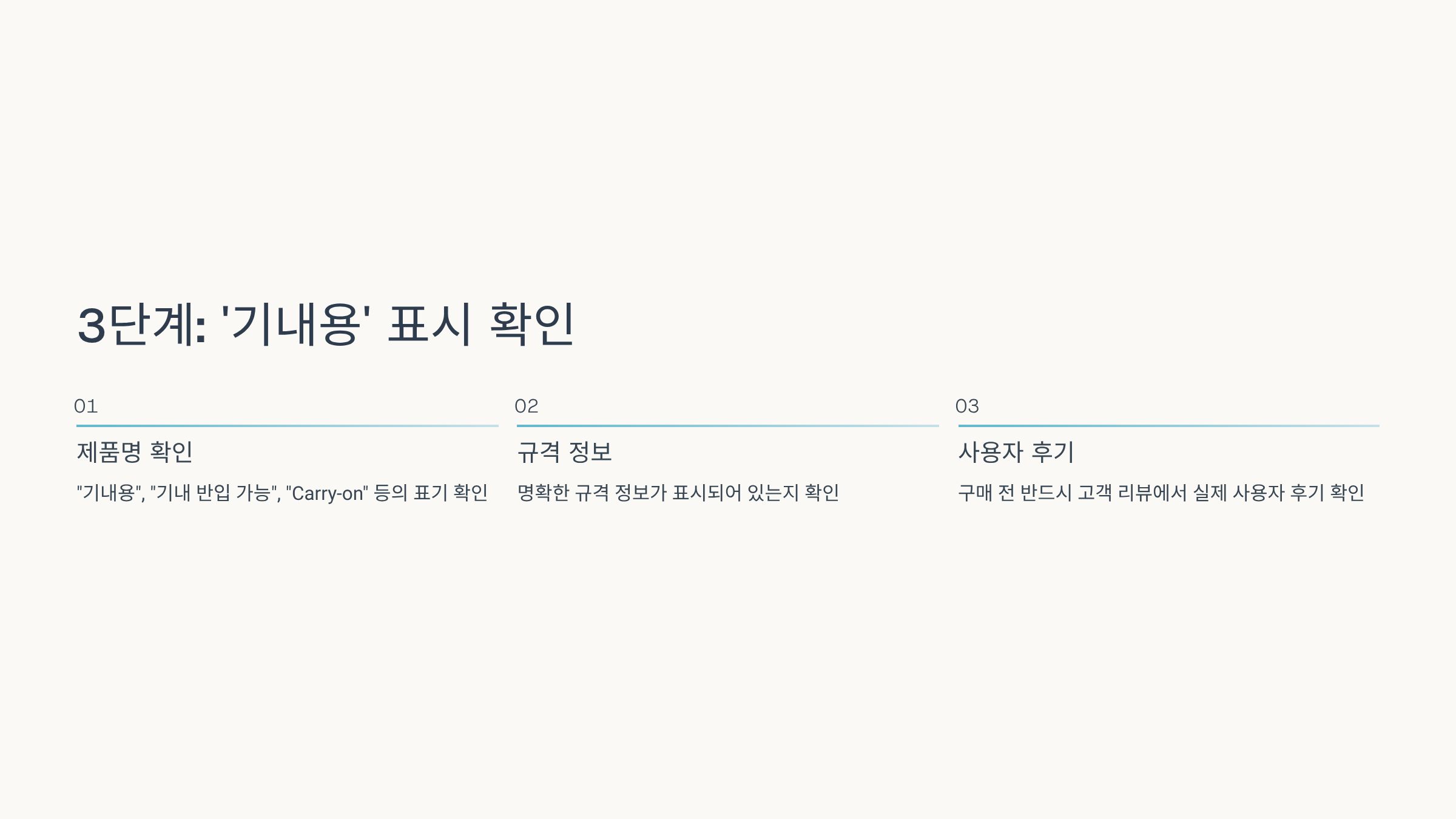 - 제품명에 "기내용", "기내 반입 가능", "Carry-on" 등의 표기 확인