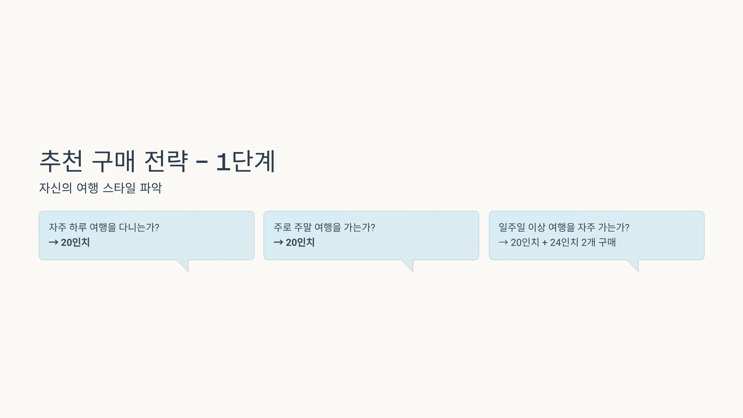 - 일주일 이상 여행을 자주 가는가? → 20인치 + 24인치 2개 구매