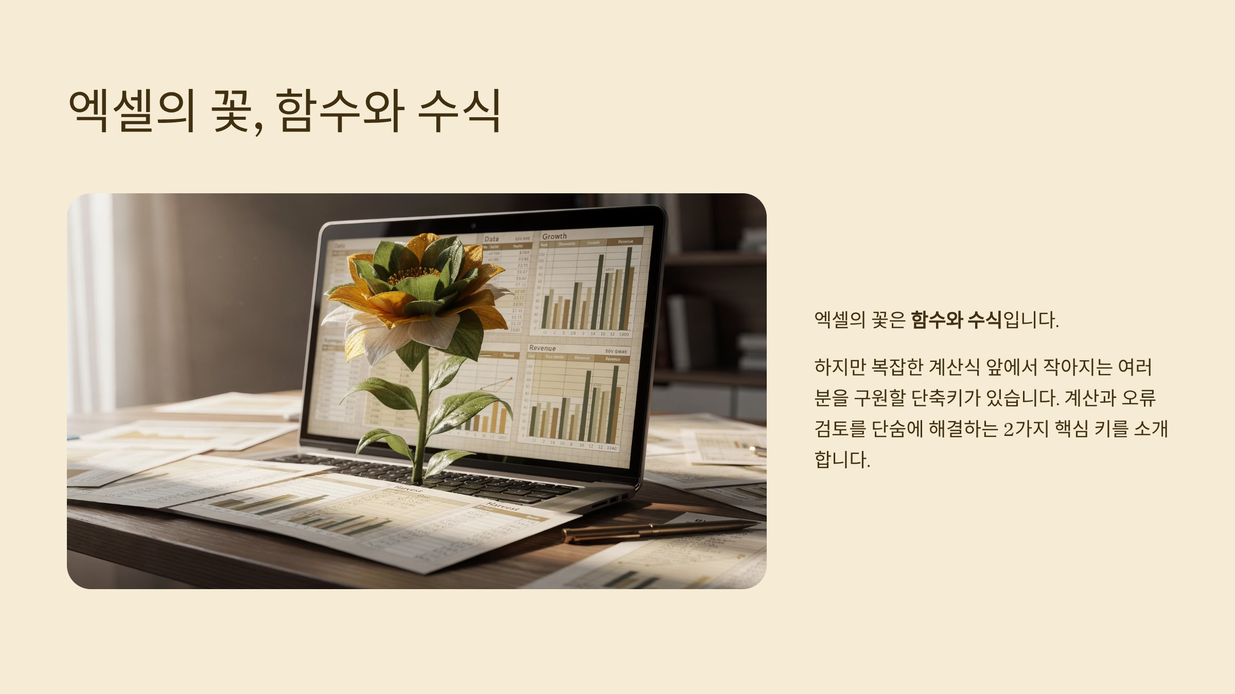 엑셀의 꽃은 함수와 수식입니다. 하지만 복잡한 계산식 앞에서 작아지는 여러분을 구원할 단축키가 있습니다.