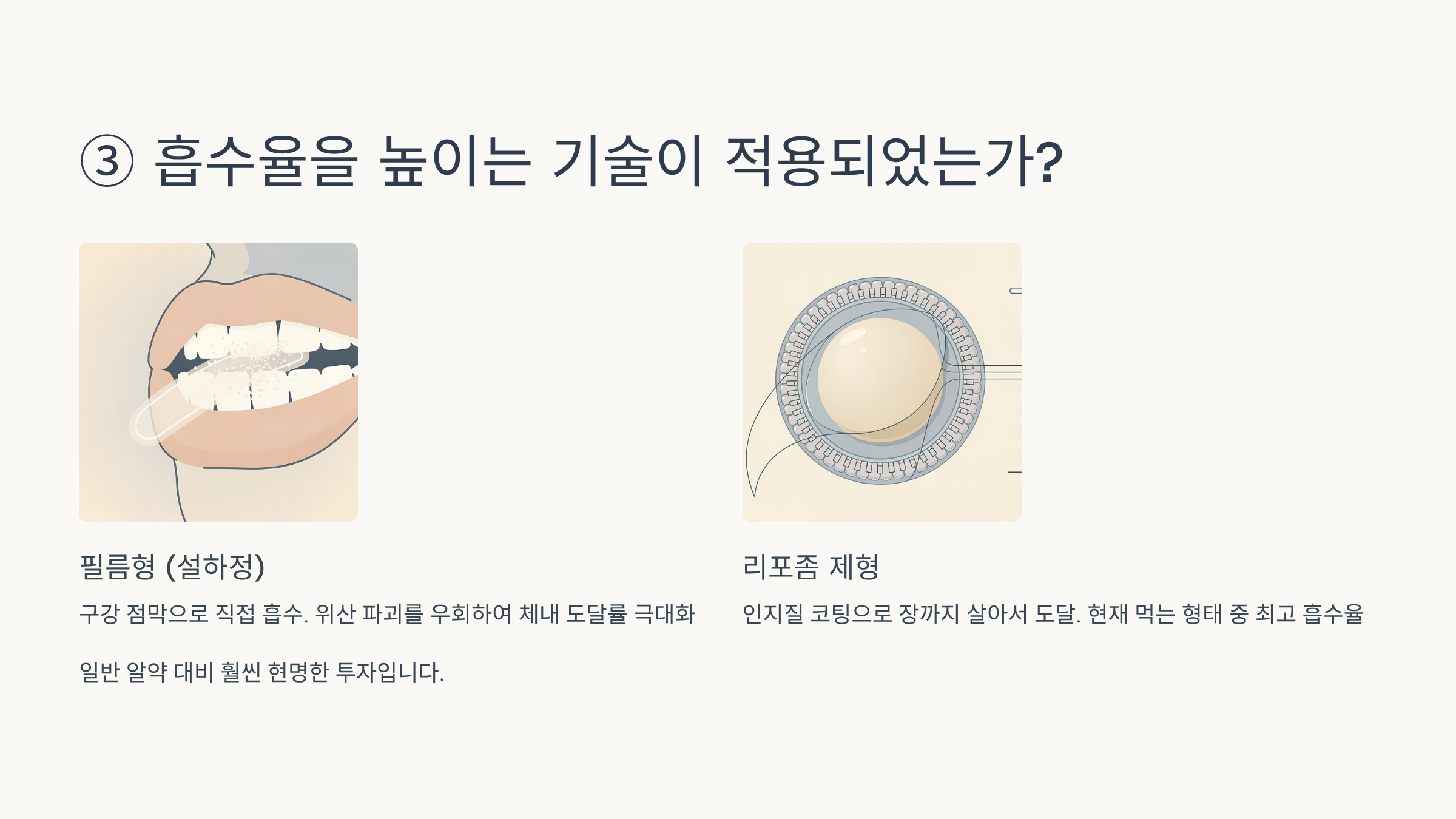 💊 알약 vs 필름 vs 리포좀: 가장 뜨거운 '흡수율' 논란의 진실