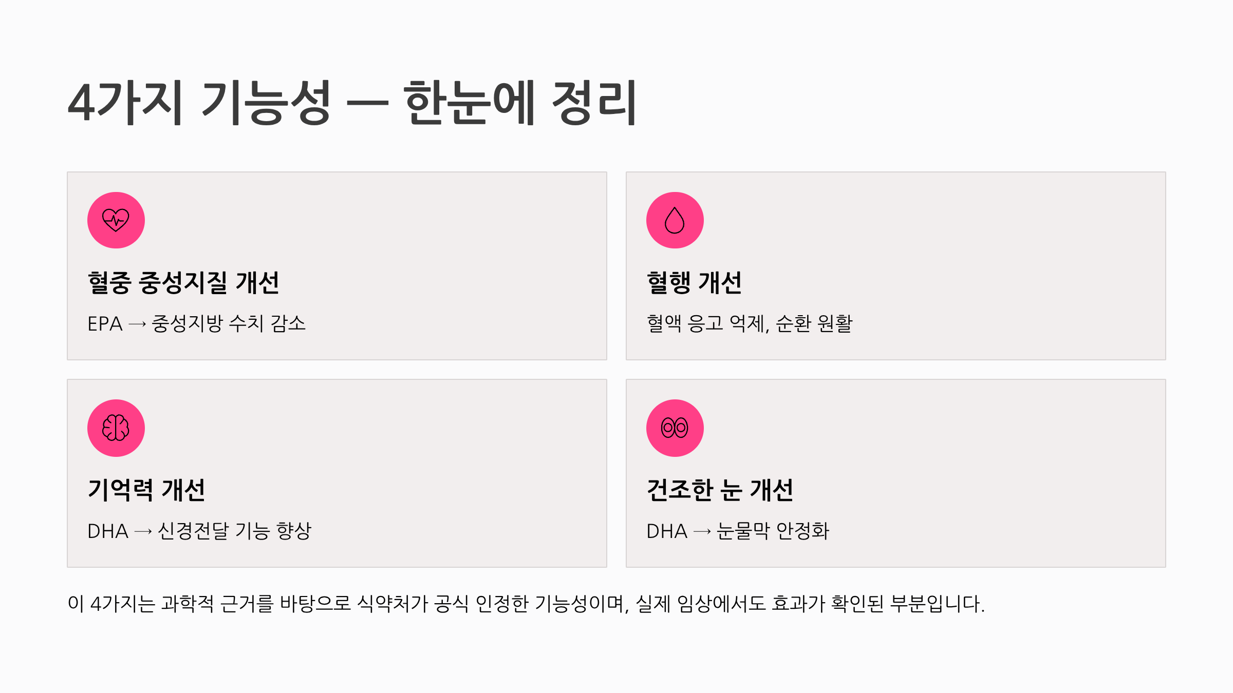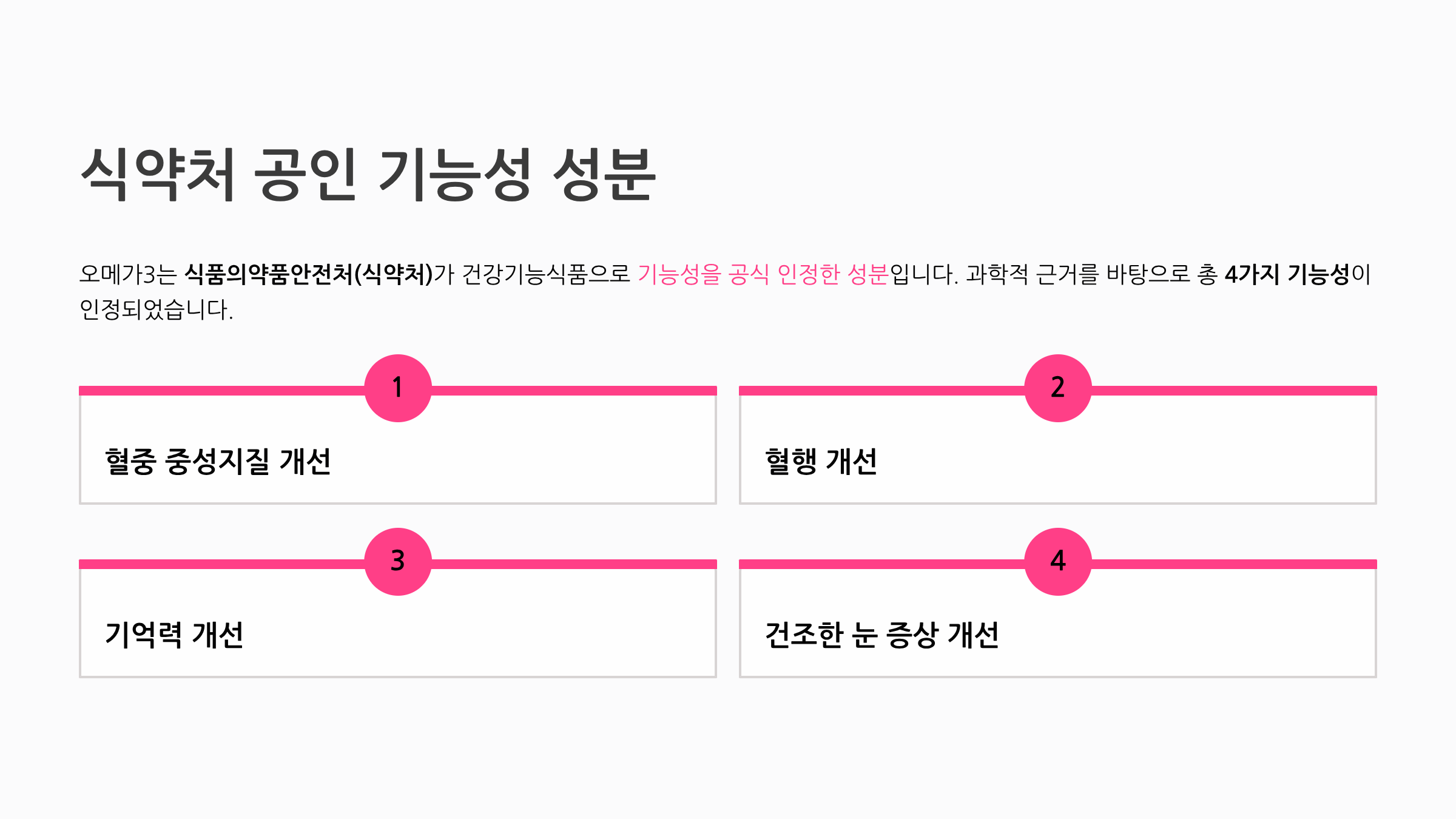 ✅ 식약처가 공식 인정한 오메가3의 4가지 기능성 효능