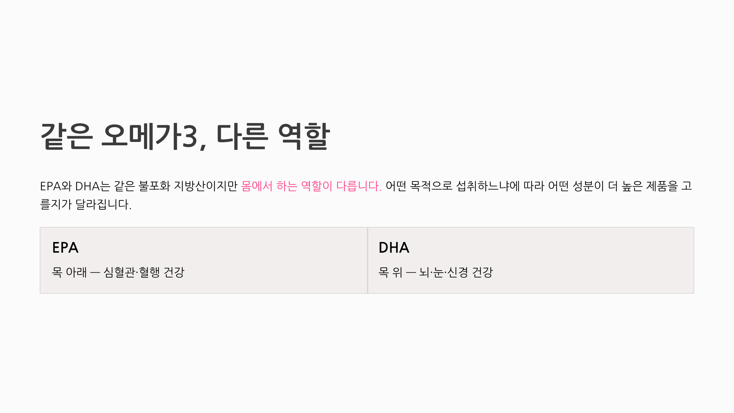 💊 EPA vs DHA, 무엇이 다를까? 목적에 따라 골라야 한다