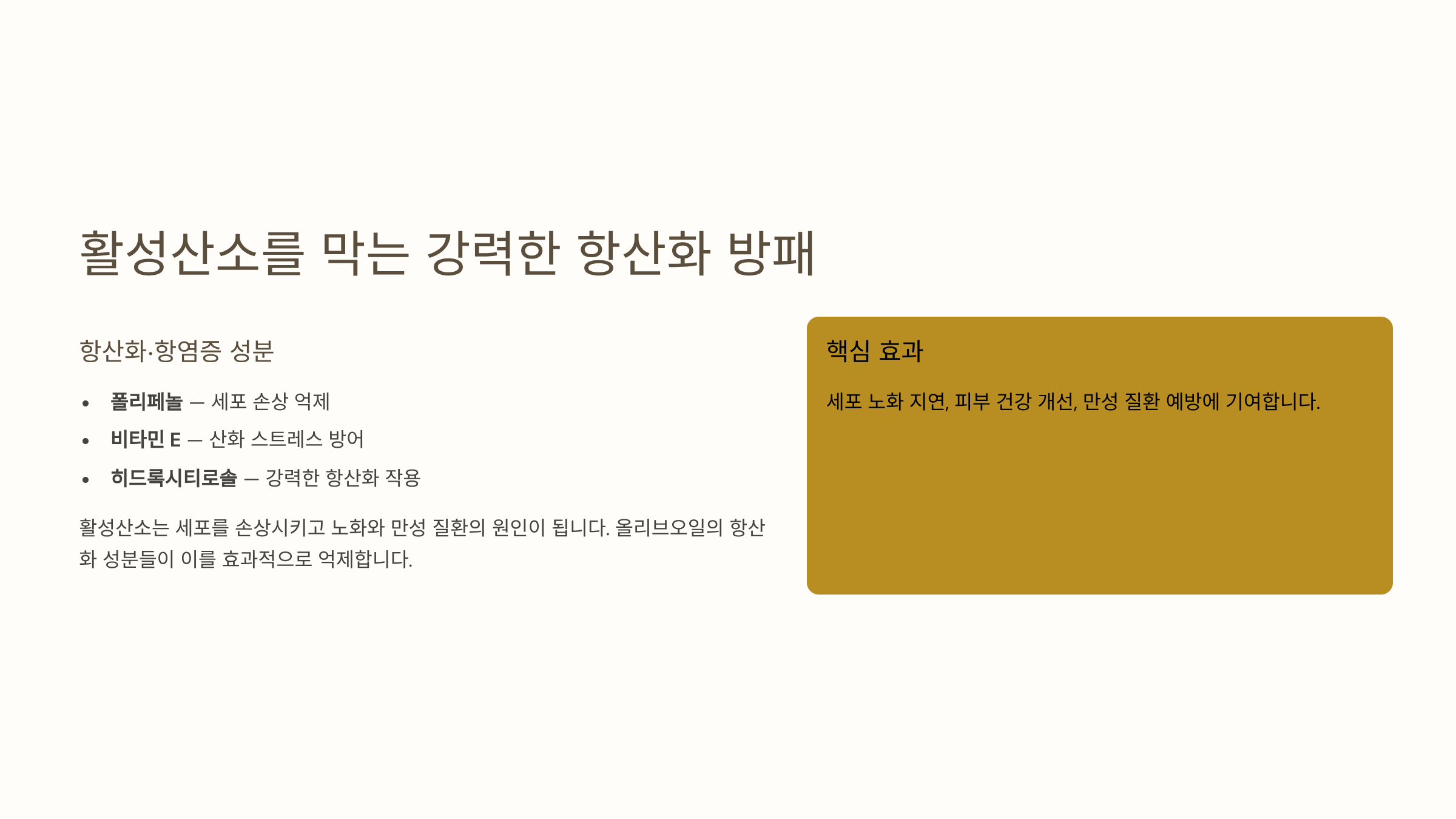 🌿 올리브오일 효능 3 - 항염·항산화와 노화 방지
