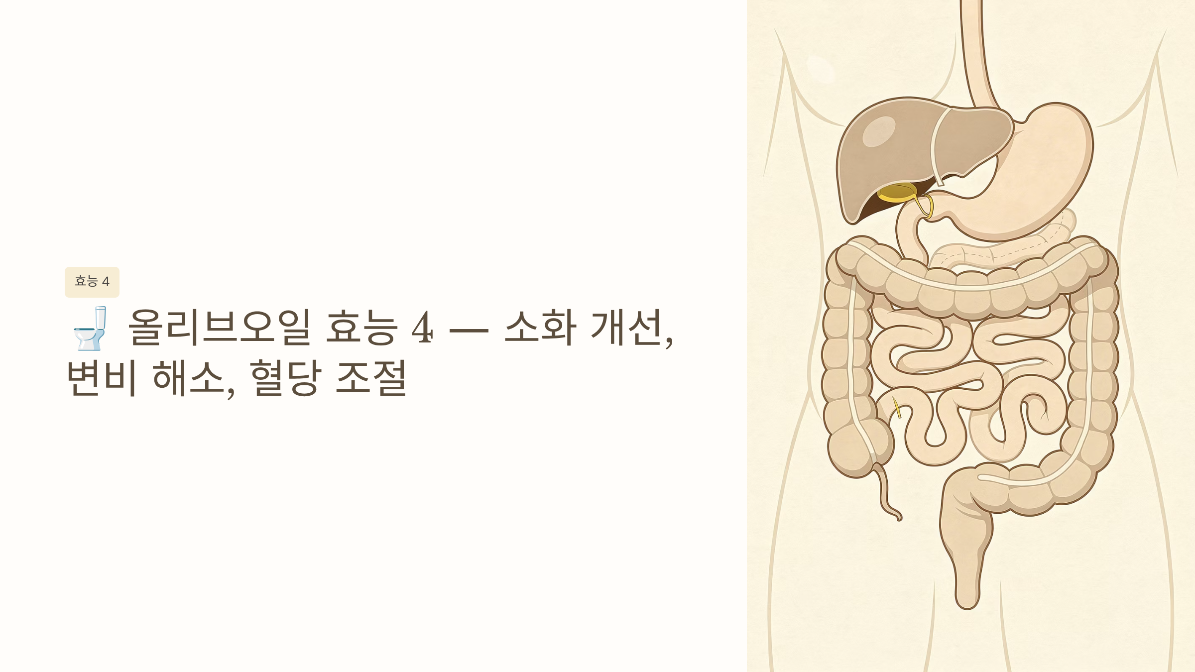 🚽 올리브오일 효능 4 - 소화 개선, 변비 해소, 혈당 조절