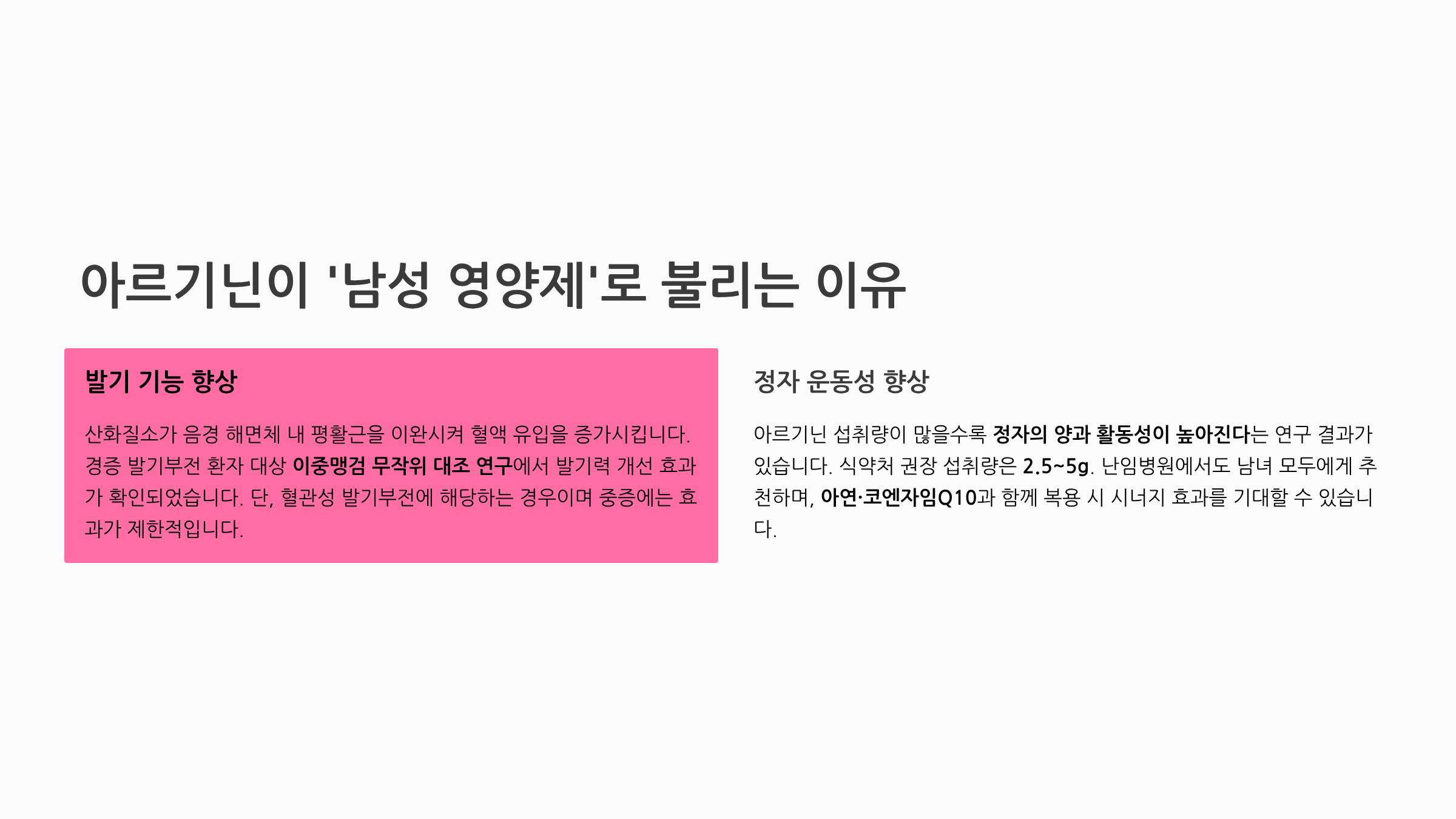 아르기닌이 '남성 영양제'로 불리는 가장 큰 이유입니다.