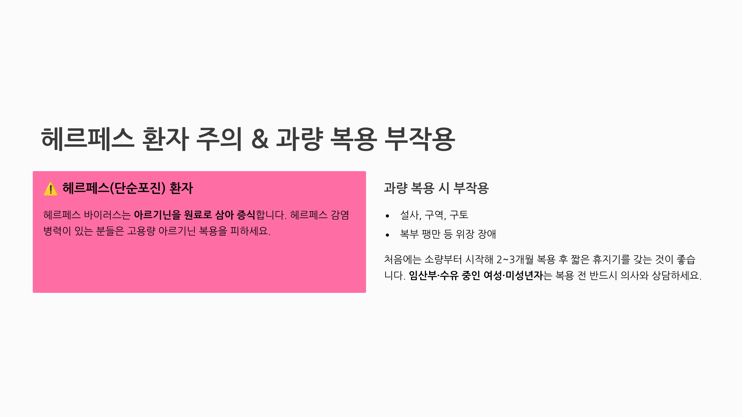 ❗ 아르기닌 부작용과 이런 분은 복용 피하세요