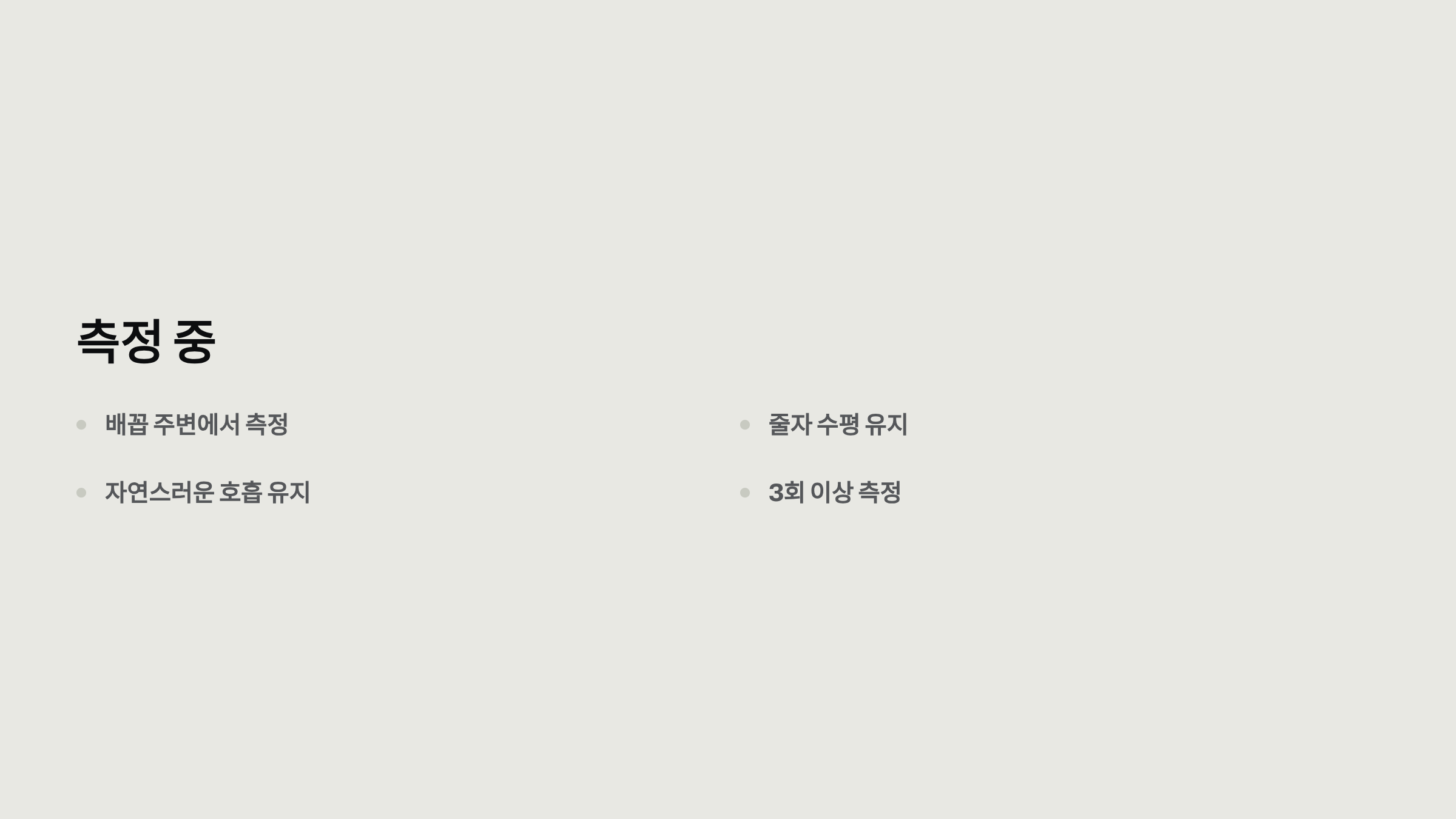 - 올바른 호흡: 자연스러운 숨을 내쉰 상태에서 측정