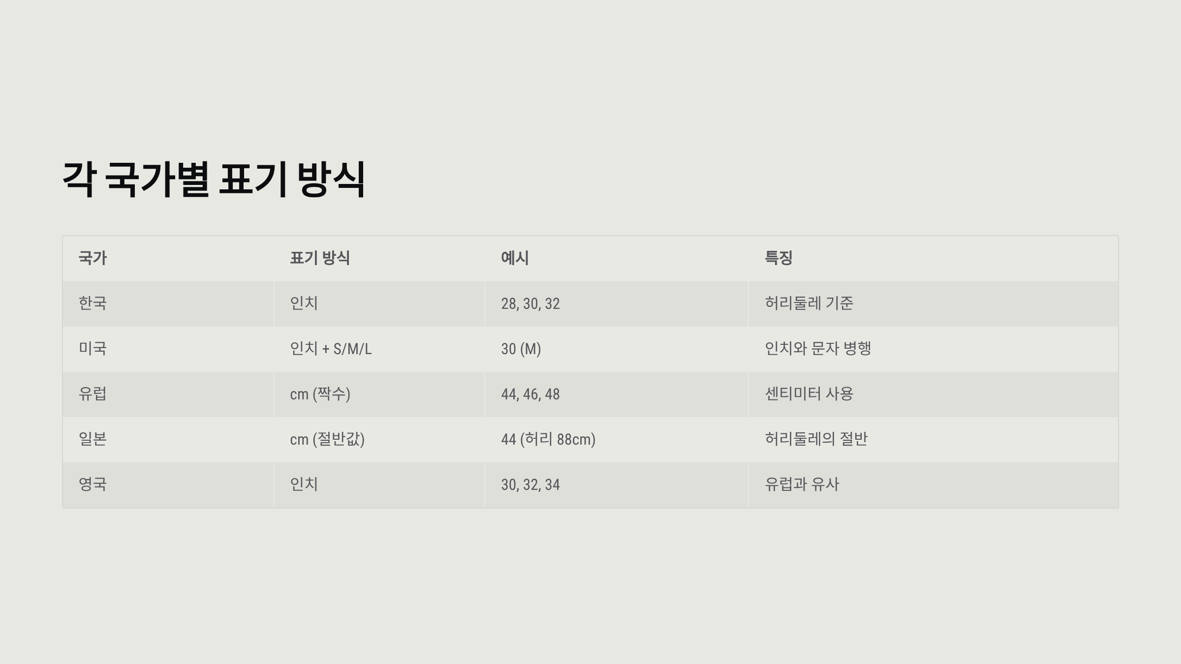 🌍 국가별 사이즈 표기 방식 비교