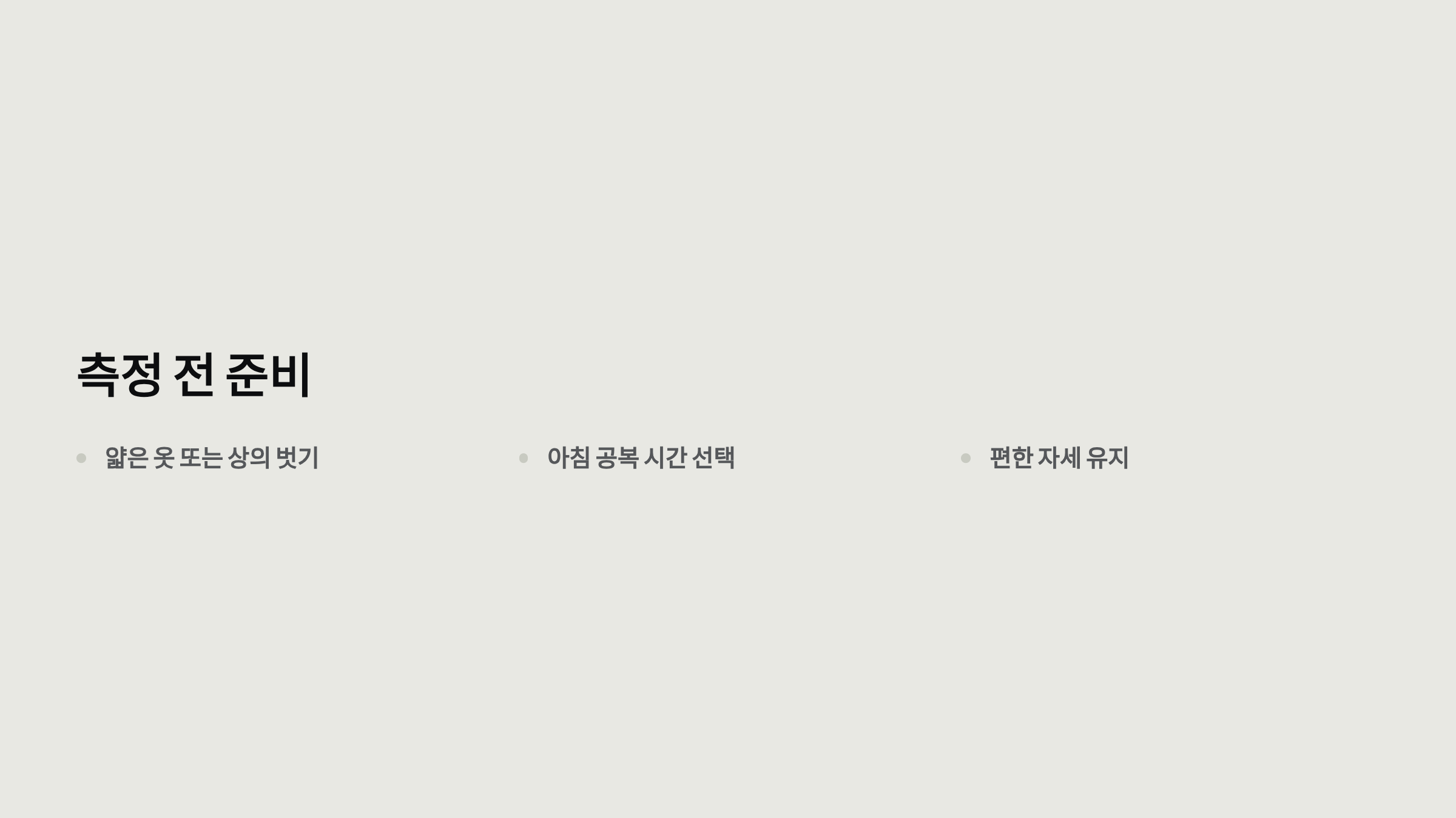 - 적절한 복장: 얇은 옷이나 상의를 벗은 상태에서 측정
