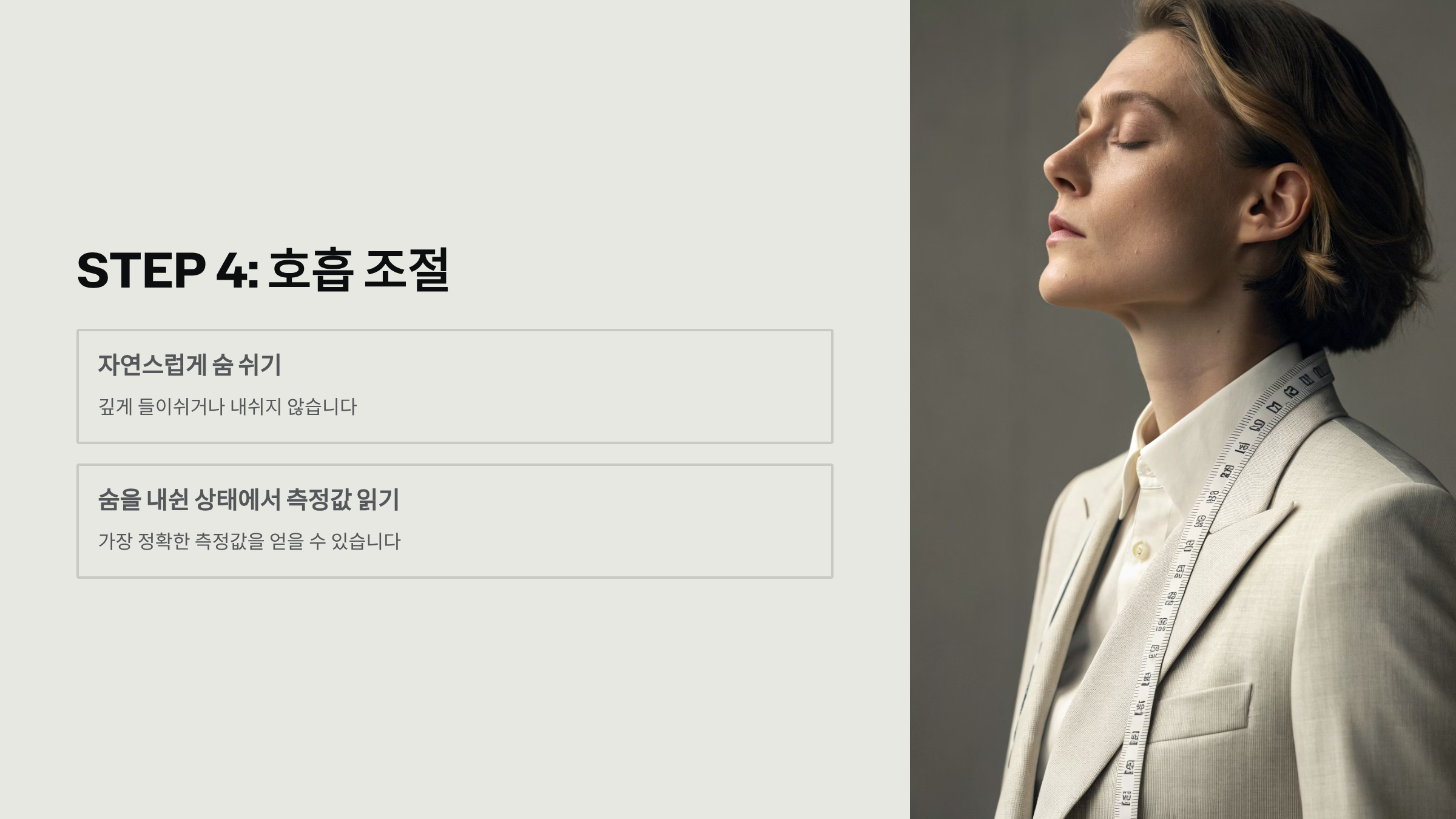 - ❌ 깊게 숨 들이쉬기: 부정확한 수치