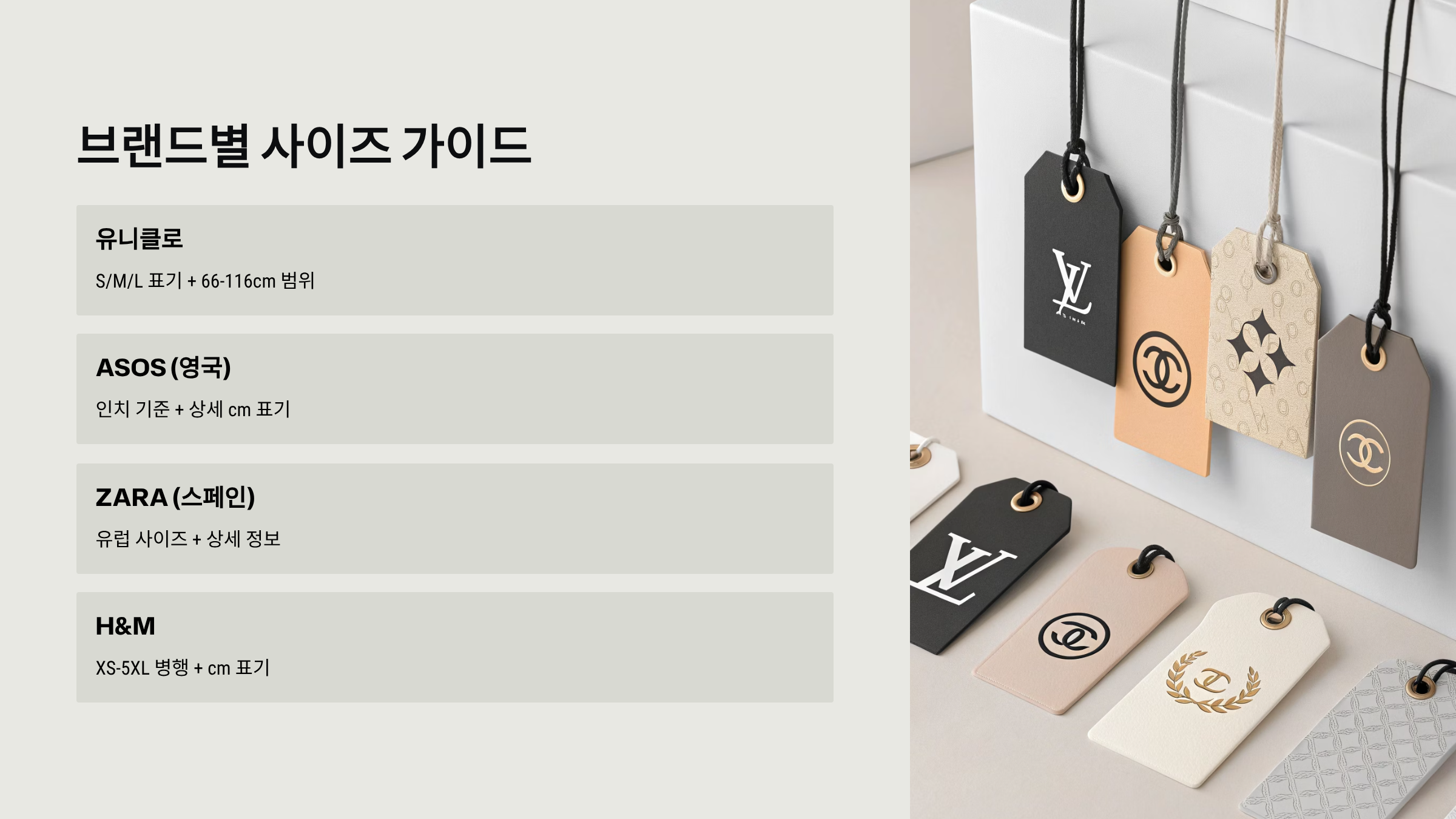📱 브랜드별 사이즈 가이드