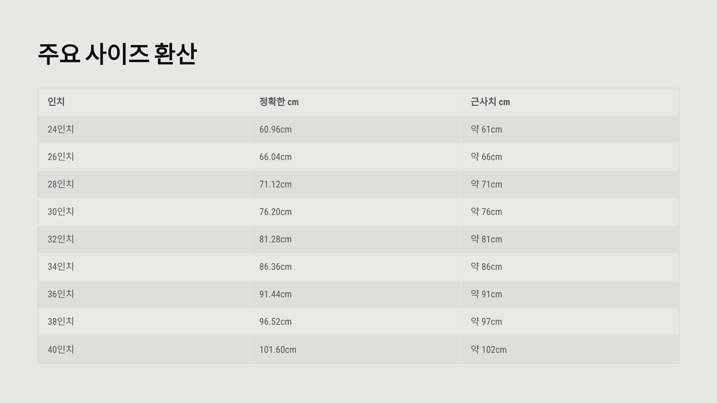 | 40인치 | 101.60cm | 약 102cm |