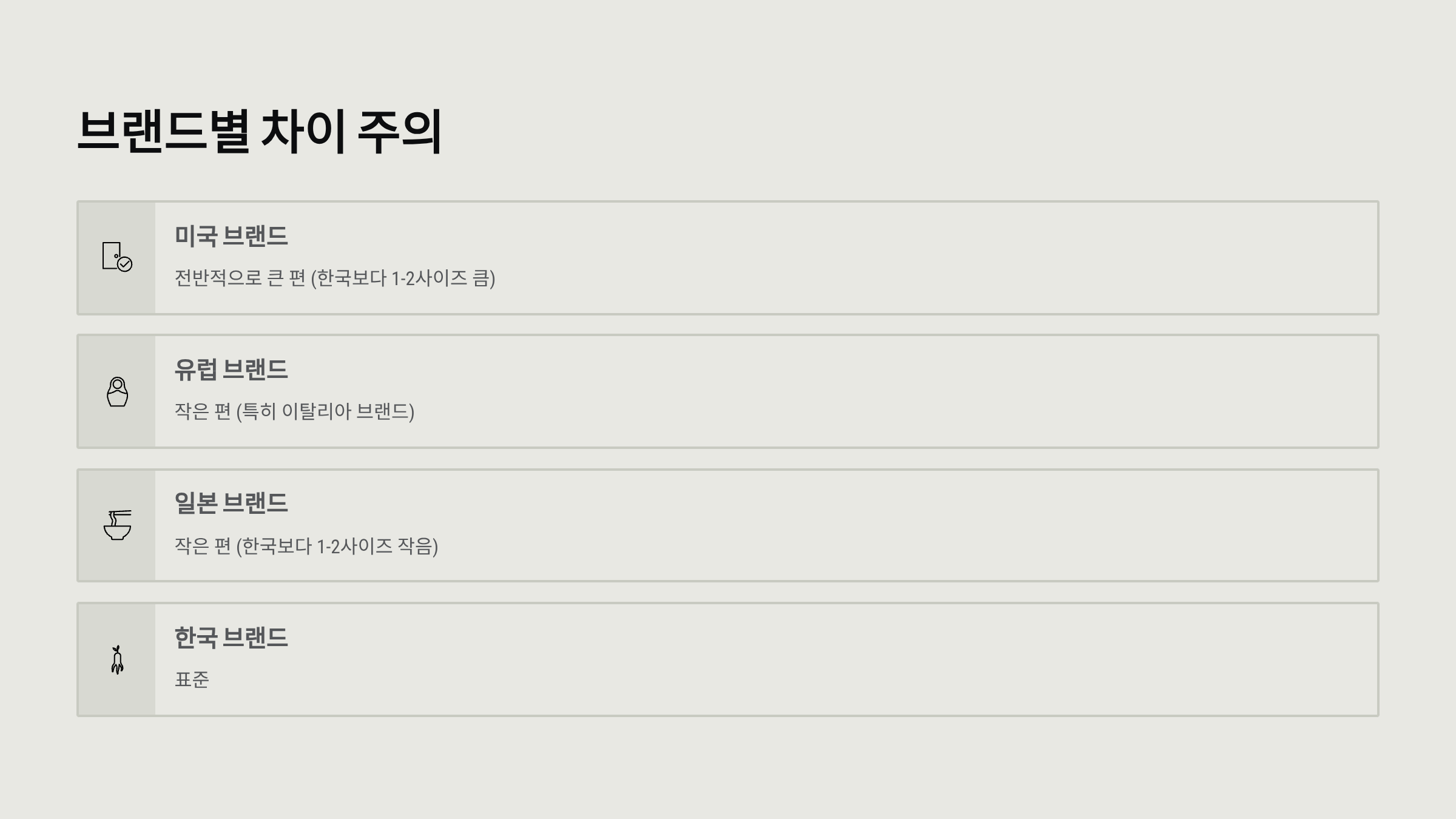 - ☑️ 국가/브랜드별 사이즈 차이 고려