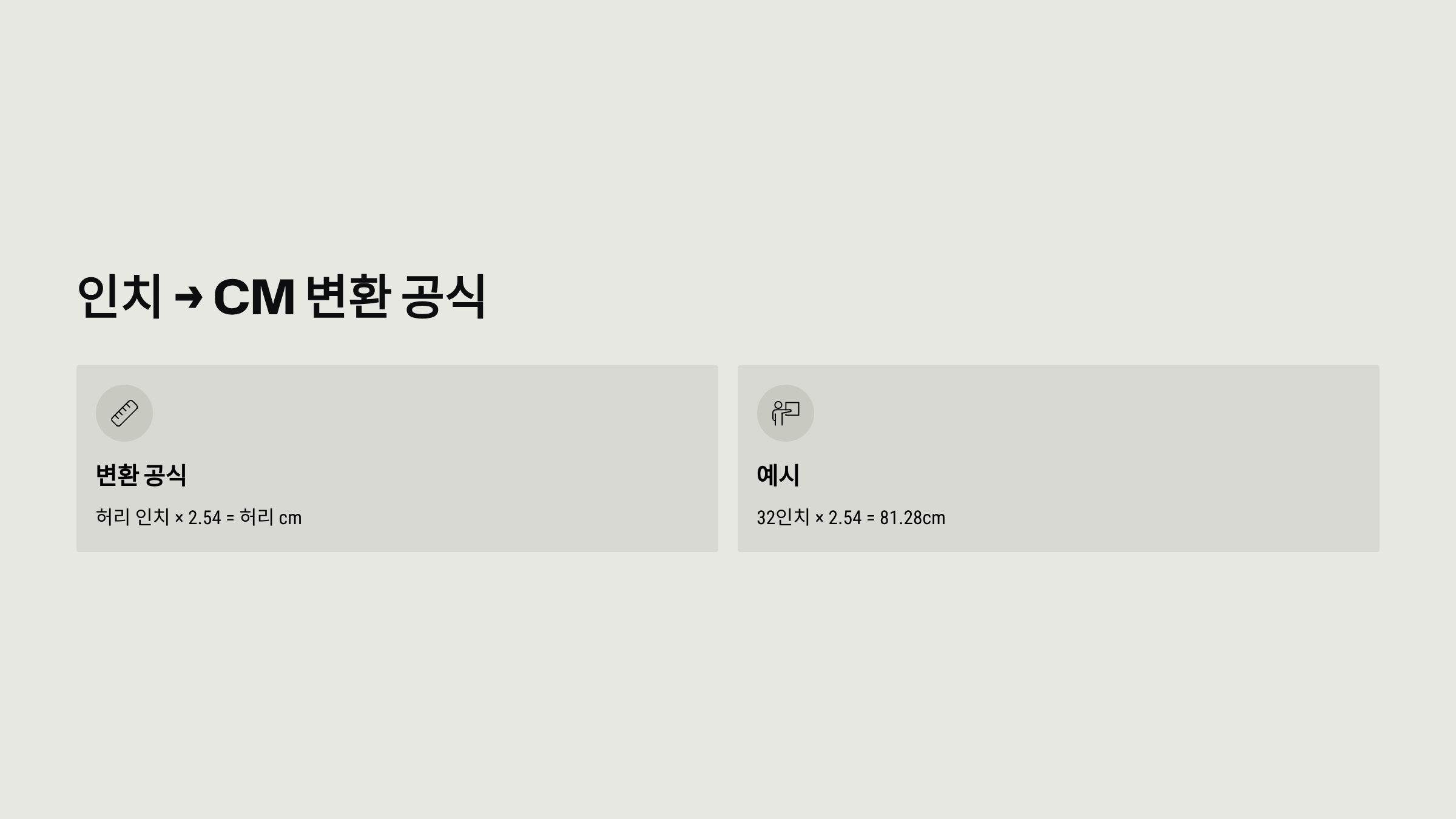 - 예) 32인치 × 2.54 = 81.28cm